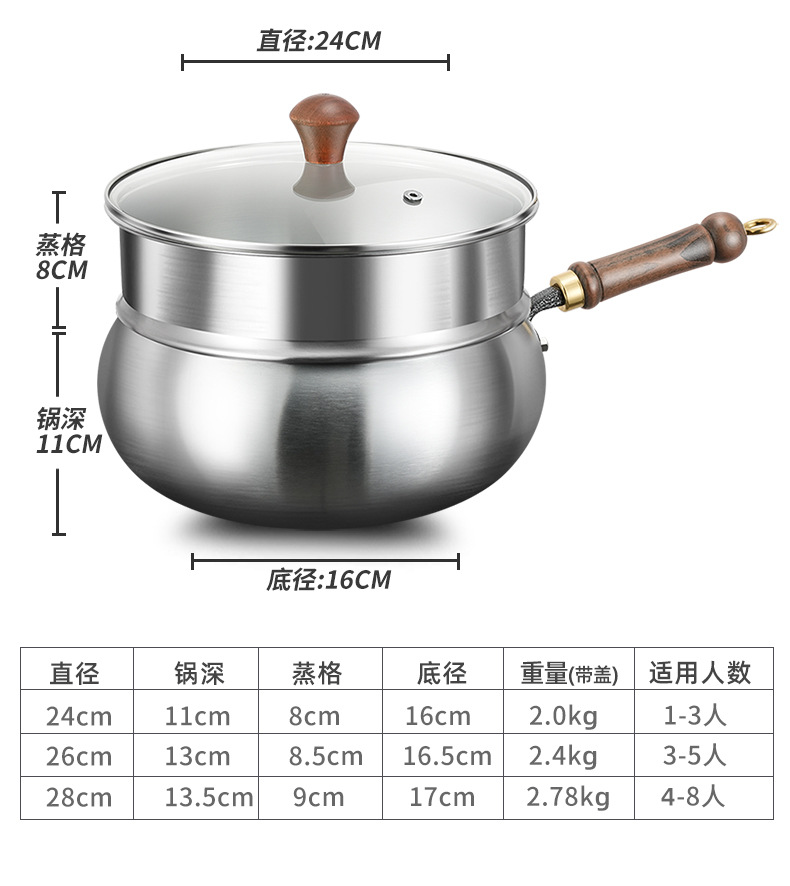 | Especificaciones | 24cm [316 acero saludable sin recubrimiento],26cm [316 acero saludable sin recubrimiento],28cm [316 acero saludable sin recubrimiento],24cm con rejilla de vapor [316 acero saludable sin recubrimiento],26cm con rejilla de vapor [316 acero saludable sin recubrimiento],28cm con rejilla de vapor [316 acero saludable sin recubrimiento] |