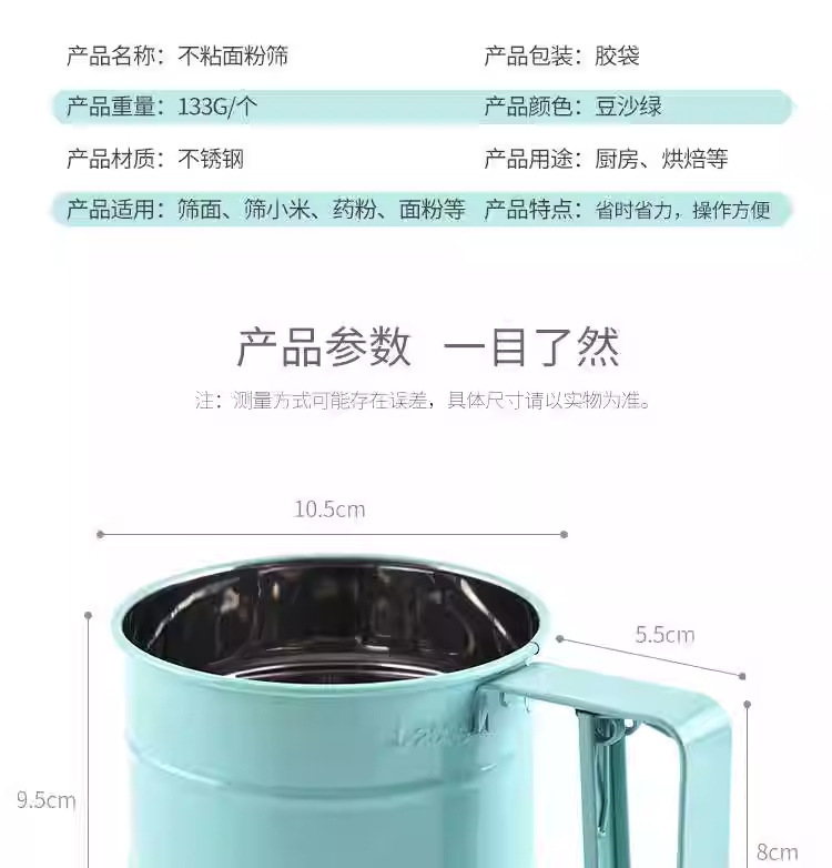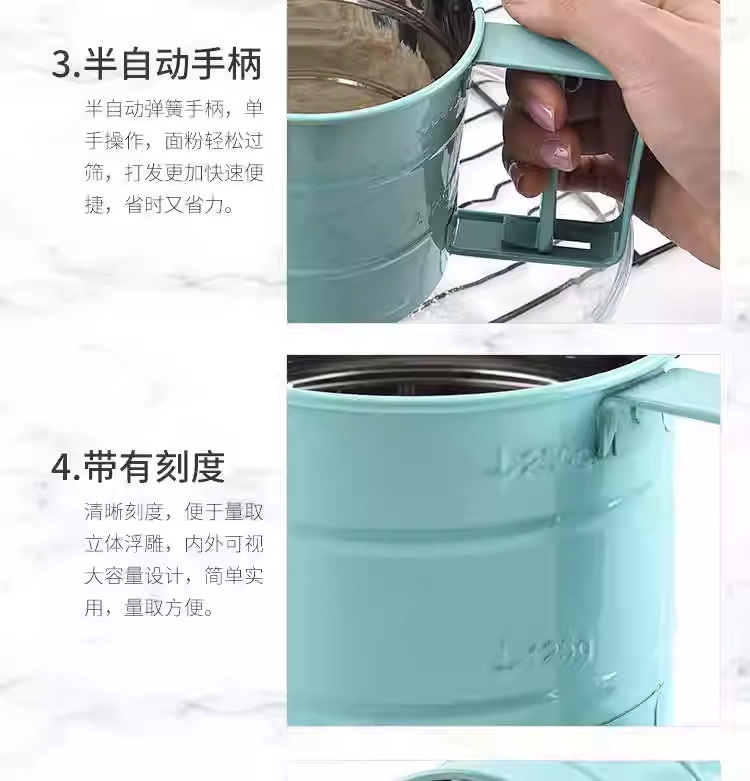 | Especificaciones | Acero inoxidable [tamiz de harina - rosa], acero inoxidable [tamiz de harina - azul], acero inoxidable [tamiz de harina - verde], acero inoxidable [tamiz de harina - color primario], acero inoxidable [tamiz de harina - color primario de doble capa] |