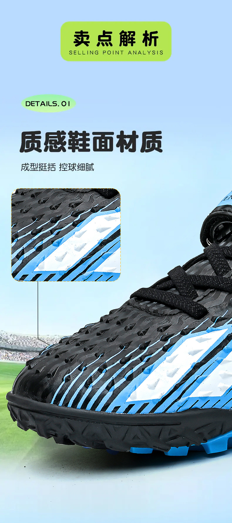 Nuevos hombres de deportes profesionales respirables de alta superior de uñas rotas zapatos de fútbol hierba adulto competencia zapatos de fútbol al por mayor más tamaño