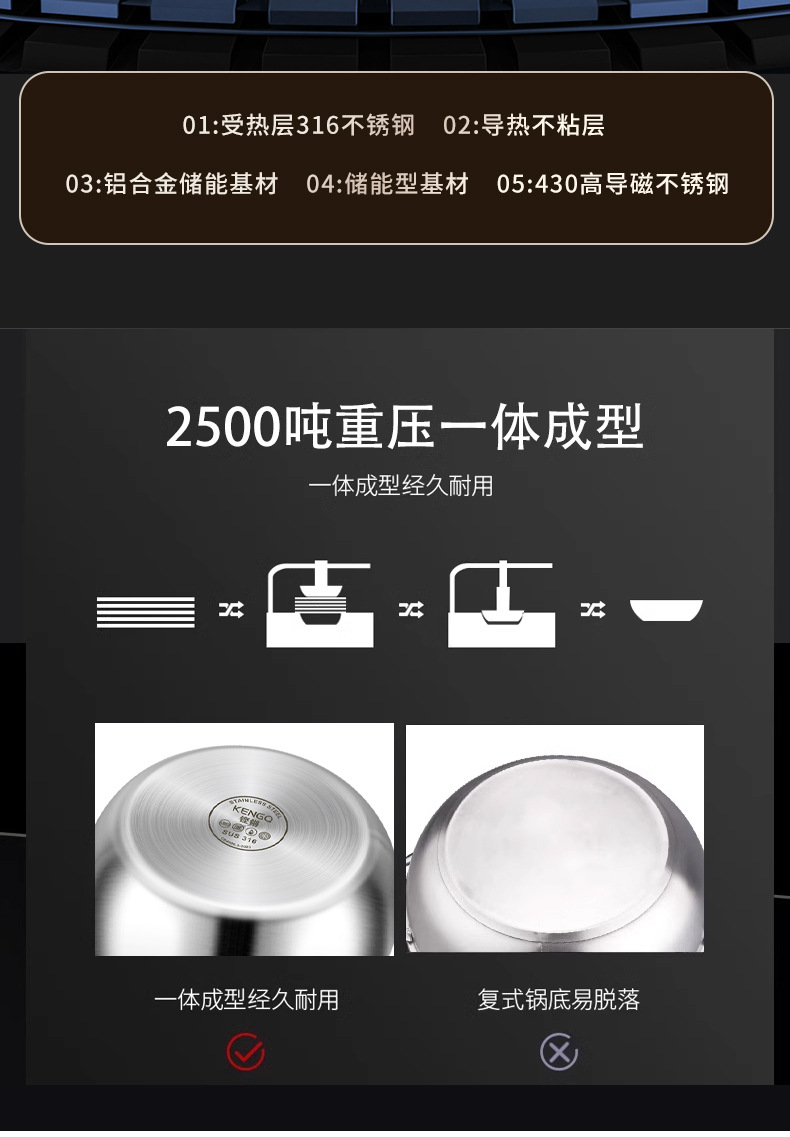 | Material del Fondo de la olla | Fondo multicapa compuesto |