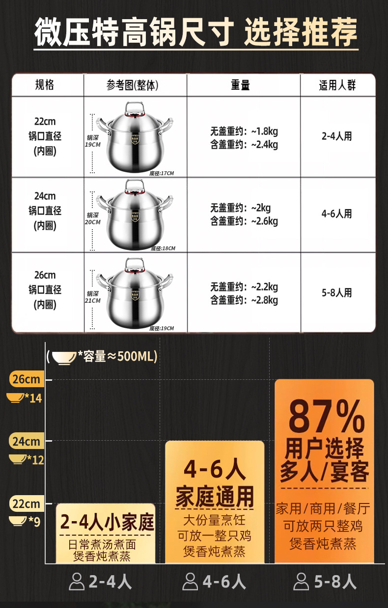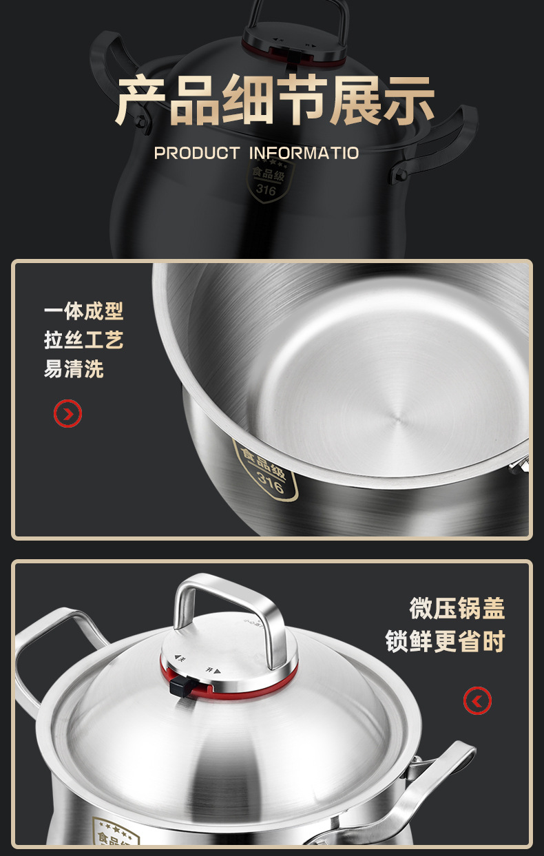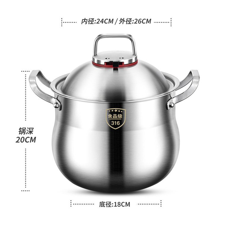 | Color | Diámetro interno 22cm / profundidad de la olla 19cm [acero 316 de espesor especial], diámetro interno 24cm / profundidad de la olla 20cm [acero 316 de espesor especial], diámetro interno 26cm / profundidad de la olla 21cm [acero 316 de espesor especial] |
