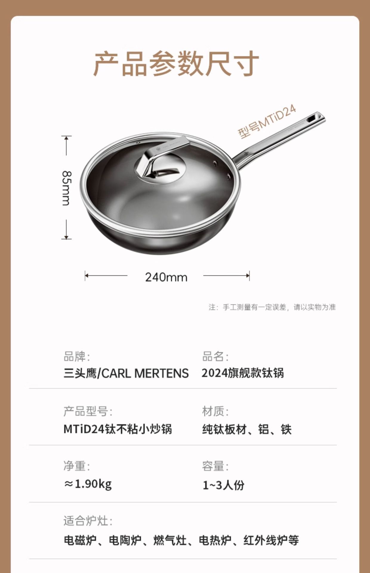 | Especificaciones | 24cm de titanio puro antiadherente sartenillo pequeño [Tree-head Eagle genuino] |