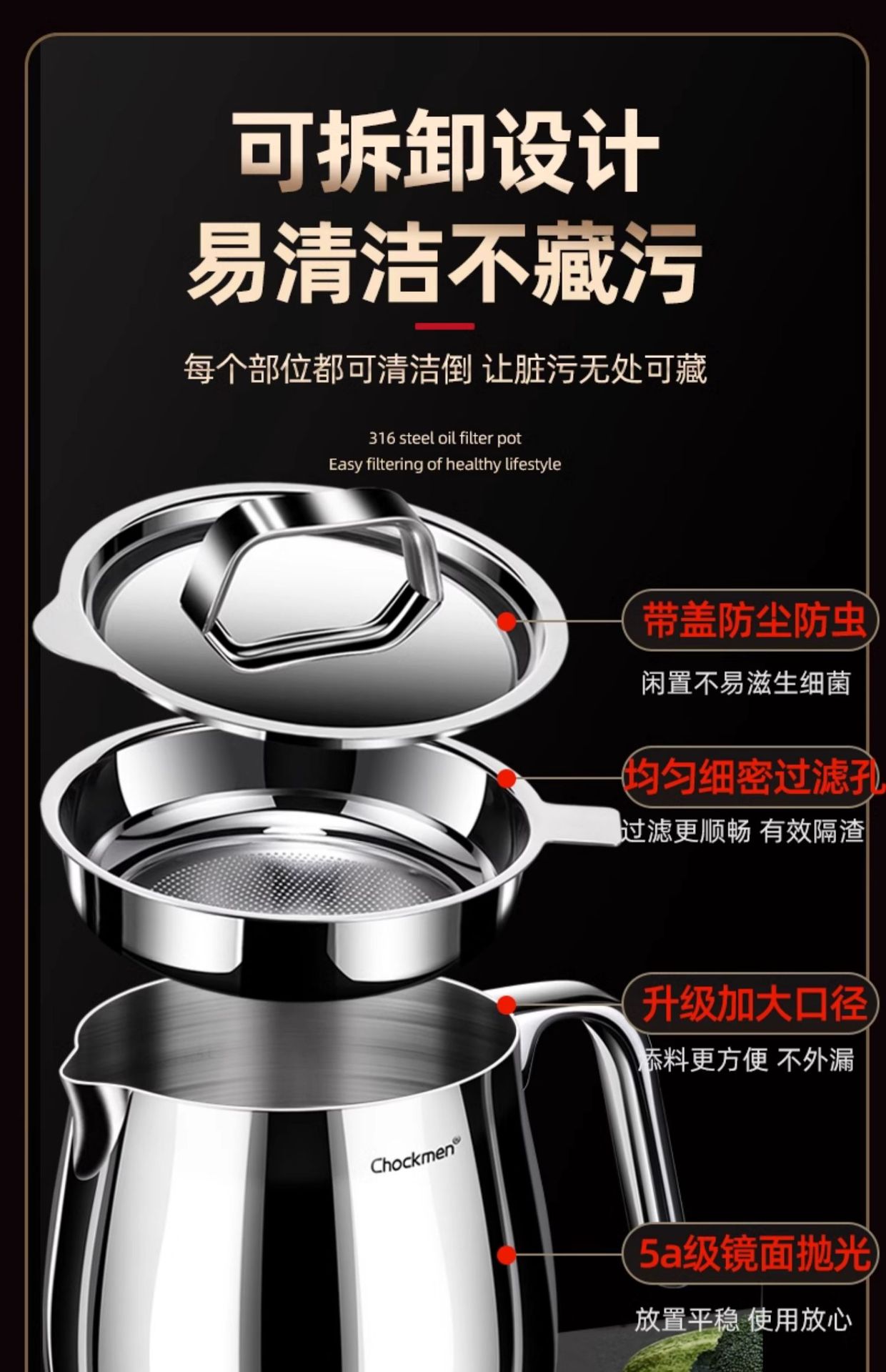 Chockmen Zhuo Deming 18 / 10 filtro de acero inoxidable tanque de aceite doméstico de cocina multipropósito filtro de leche de soja