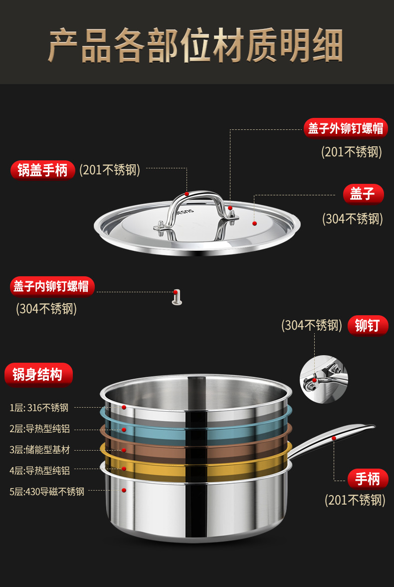 | Material del Fondo de la olla | 430 acero inoxidable |