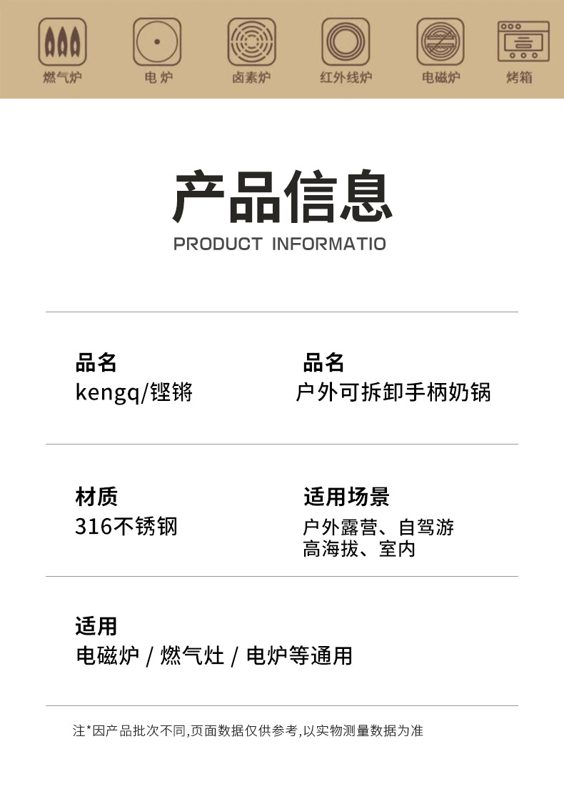 Ollas para exteriores Ollas pequeñas extraíbles portátiles Ollas de leche de acero inoxidable 316 Ollas para acampar sin conductor Ollas universales