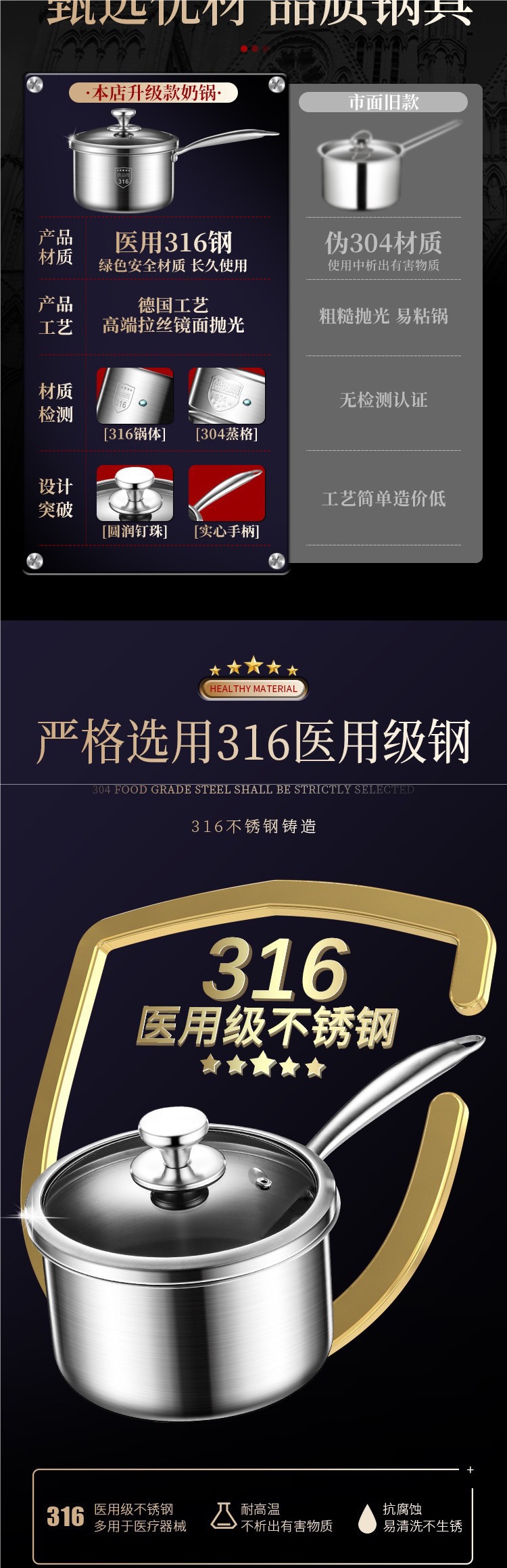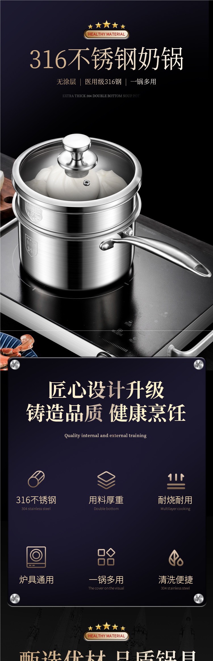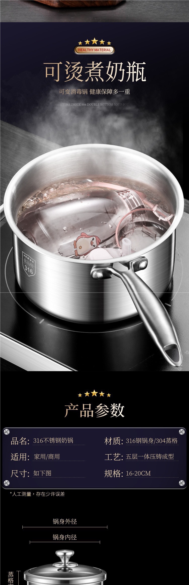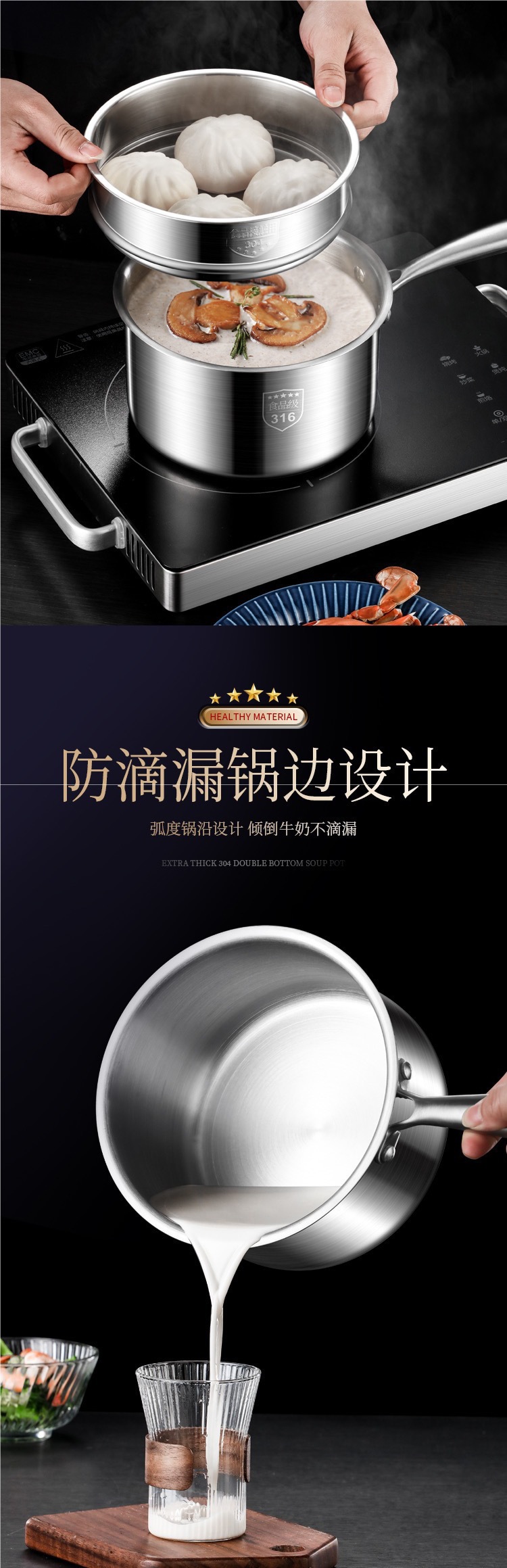 | Color | [Grado de acero inoxidable 316] olla de leche de 18 cm, [Grado de acero inoxidable 316] olla de leche de 20 cm, [Grado de acero inoxidable 316] olla de leche de 22 cm, [Grado de acero inoxidable 316] 18 cm con vapor, [Grado de acero inoxidable 316] 20 cm con vapor, [Grado de acero inoxidable 316] 22 cm con vapor |