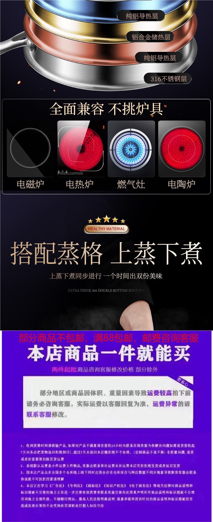 | Material del Fondo de la olla | Fondo multicapa compuesto |