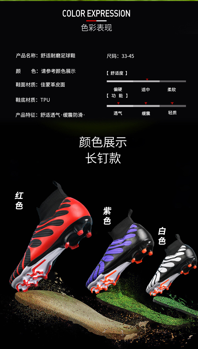 24 zapatos de fútbol transfronterizos de alto nivel zapatos de entrenamiento de entrenamiento de clavos largos zapatos de fútbol para hombres y mujeres