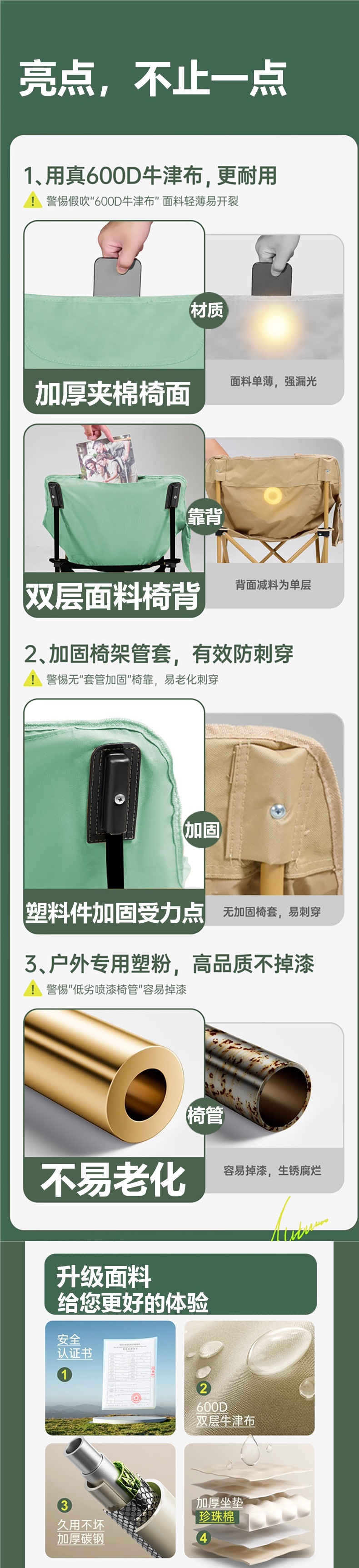 | Color | 【月亮椅米白色】六层夹棉管套加固(送收纳袋),【月亮椅曜黑色】六层夹棉管套加固(送收纳袋),【月亮椅卡其色】六层夹棉管套加固(送收纳袋),【月亮椅墨绿色】六层夹棉管套加固(送收纳袋),【高背月亮椅冬竹青】六层夹棉管套加固(送收纳袋),【高背月亮椅卡其色】六层夹棉管套加固(送收纳袋),【高背月亮椅曜黑色】六层夹棉管套加固(送收纳袋),【加粗加固加厚600D牛津布】大号米白加侧兜(送收纳袋),【加粗加固加厚600D牛津布】大号黑色加侧兜(送收纳袋),【三档可调节高背月亮椅冬竹青】六层夹棉管套加固(送收纳袋),【三档可调节高背月亮椅卡其色】六层夹棉管套加固(送收纳袋),【三档可调节高背月亮椅曜黑色】六层夹棉管套加固(送收纳袋),【方桌3件套】黄色53cm方桌+2月亮椅卡其色(桌子椅子送收纳袋),【方桌3件套】黑色53cm方桌+2把月亮椅曜黑色(桌子椅子送收纳袋),【方桌5件套】黄色53cm方桌+4月亮椅卡其色(桌子椅子送收纳袋),【方桌5件套】黑色53cm方桌+4把月亮椅曜黑色(桌子椅子送收纳袋),【长桌5件套】黑色95cm长桌+4把月亮椅曜黑色(桌子椅子送收纳袋),【长桌7件套】黑色95cm长桌+6把月亮椅曜黑色(桌子椅子送收纳袋),【长桌5件套】黄色95cm长桌+4把月亮椅卡其色(桌子椅子送收纳袋),【长桌7件套】黄色95cm长桌+6把月亮椅卡其色(桌子椅子送收纳袋),【长桌5件套】黄色加大120cm长桌+4把月亮椅卡其色(桌子椅子送收纳袋),【长桌7件套】黄色加大120cm长桌+6把月亮椅卡其色(桌子椅子送收纳袋),【长桌5件套】黑色加大120cm长桌+4把月亮椅曜黑色(桌子椅子送收纳袋),【长桌7件套】黑色加大120cm长桌+6把月亮椅曜黑色(桌子椅子送收纳袋),山标-珍珠白收纳袋,卡其橙收纳袋 |