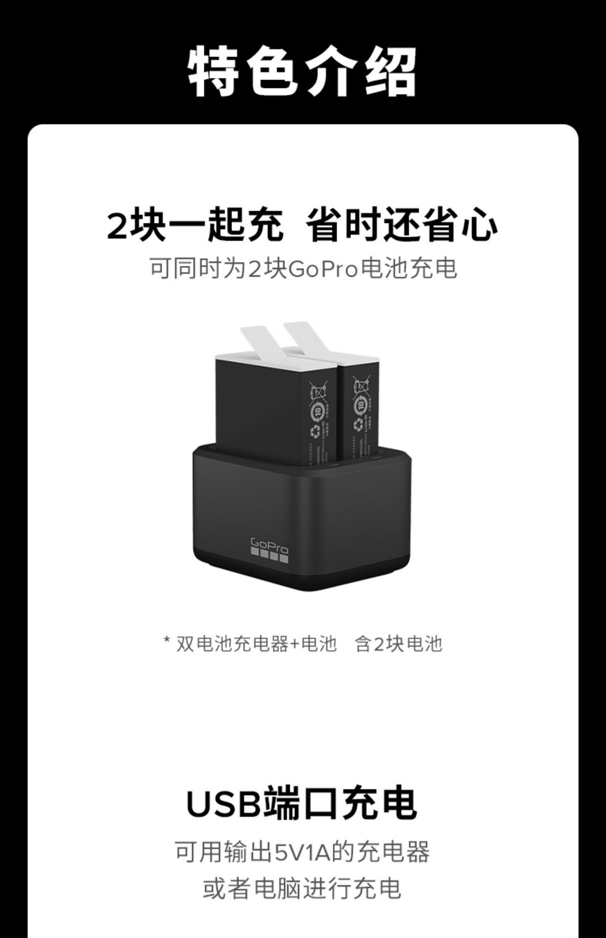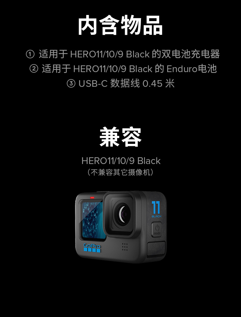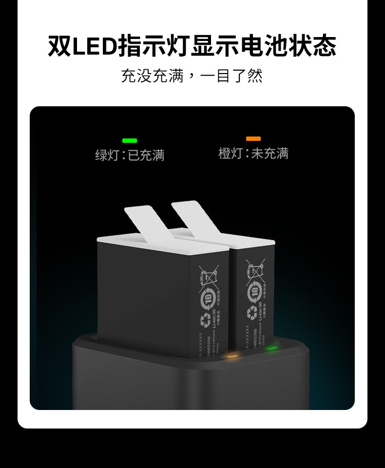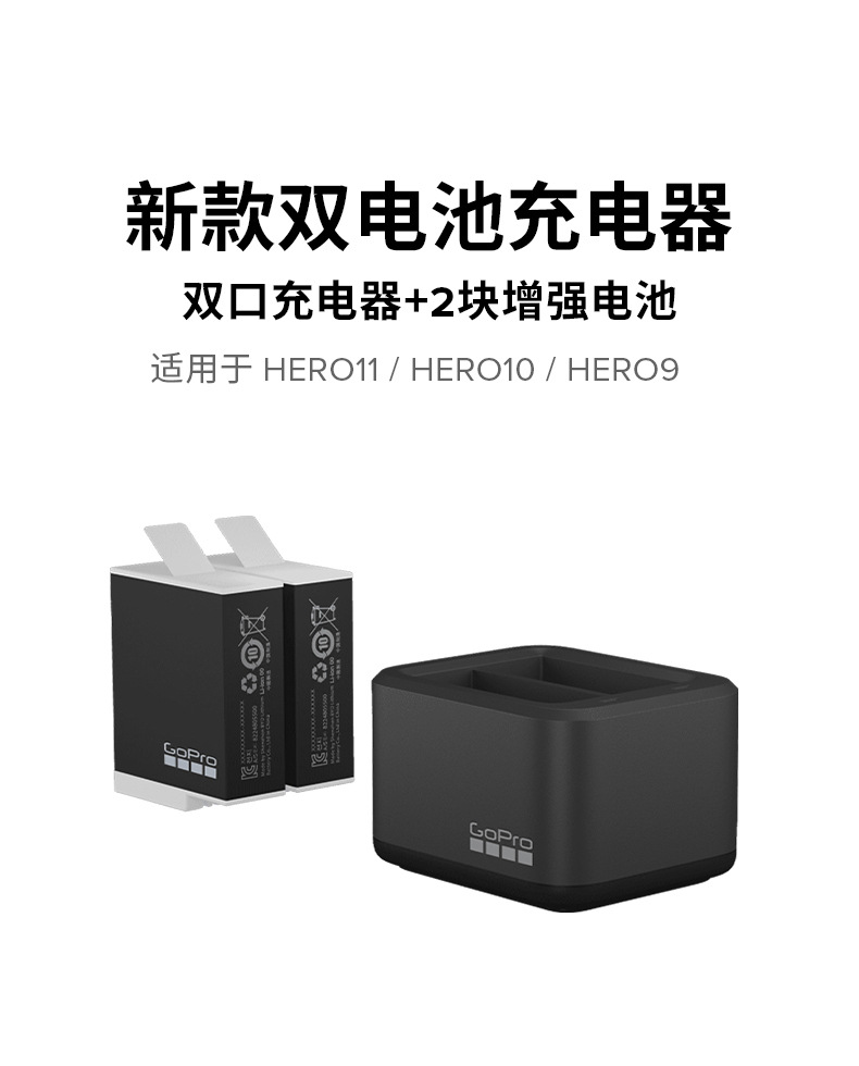 8 Accesorios de cámara deportiva GoPro Cargador de baterías dobles + 2 baterías Enduro HERO12 / 11 / 10 / 9