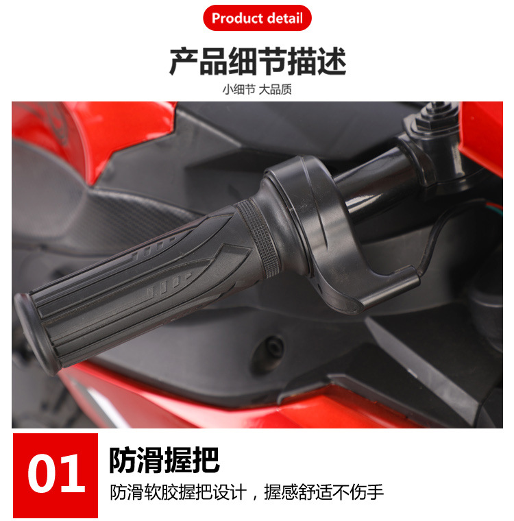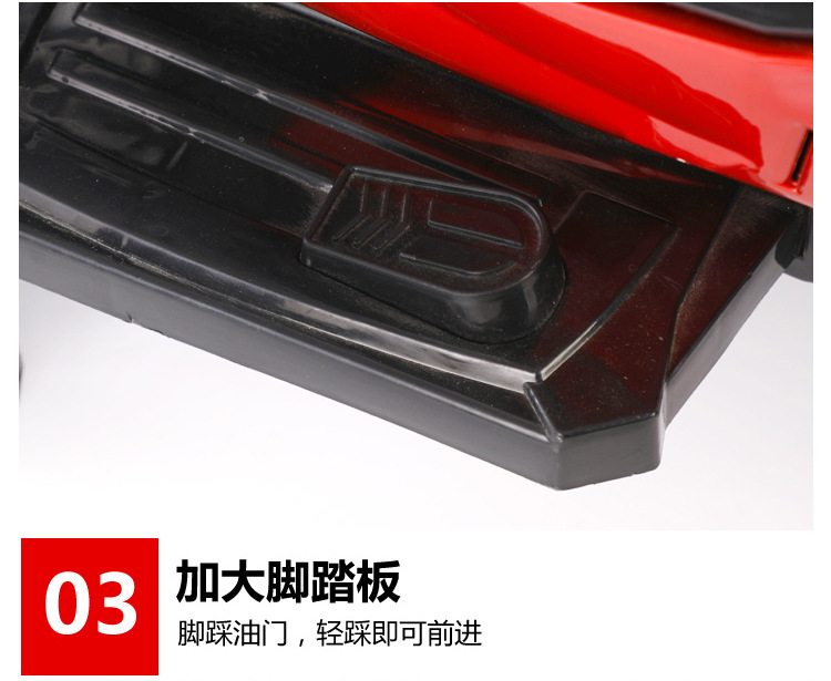 | Colores | Batera blanca de 12V estándar con pie en el acelerador,La batería roja de 12V estándar pisa el acelerador,La batería azul de 12V estándar pisa el acelerador,Con batería blanca de 12V rueda intermitente del acelerador de tornillo manual,Con batería roja de 12V rueda intermitente del acelerador de tornillo manual,Rueda intermitente del acelerador de tornillo manual de batería azul de 12V,Arriba con pintura roja batería de 12V, tornillo manual, acelerador, rueda intermitente, Bluetooth,Arriba con pintura azul batería de 12V, tornillo de mano, acelerador, rueda intermitente, Bluetooth |