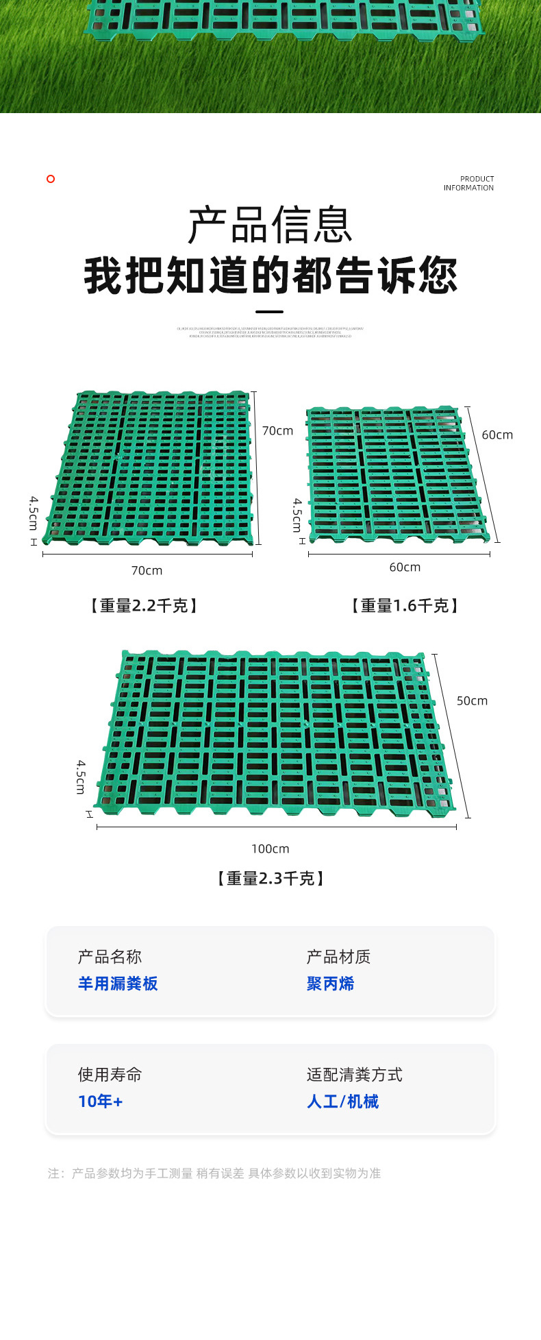 | Especificaciones del producto | Placa de fugas de estiércol de ovejas -60 * 60 * 4.5, Placa de fugas de estiércol de ovejas -70 * 70 * 4.5, Placa de fugas de estiércol de ovejas -100 * 50 * 4.5 |