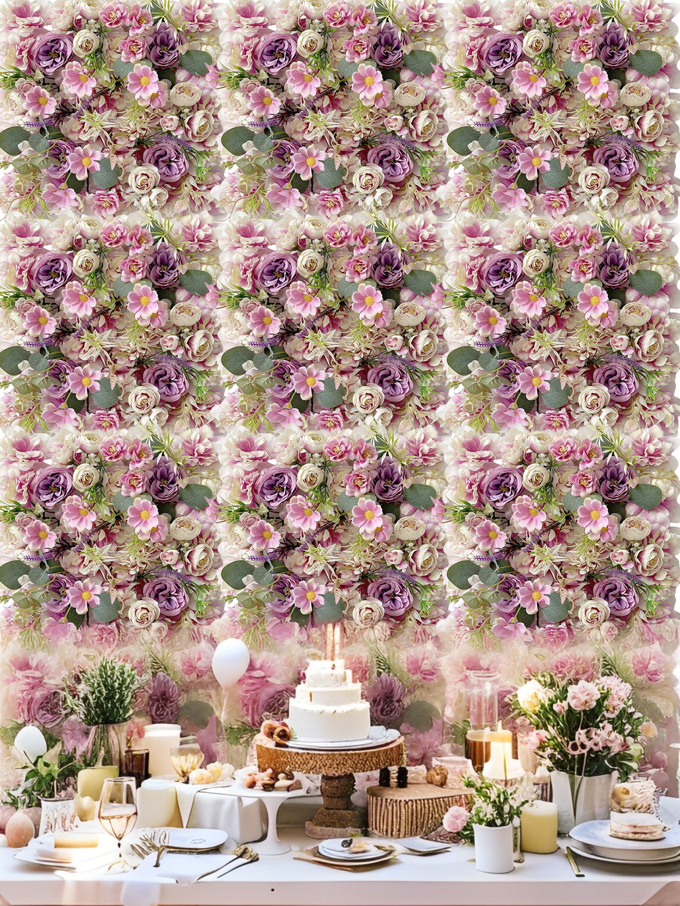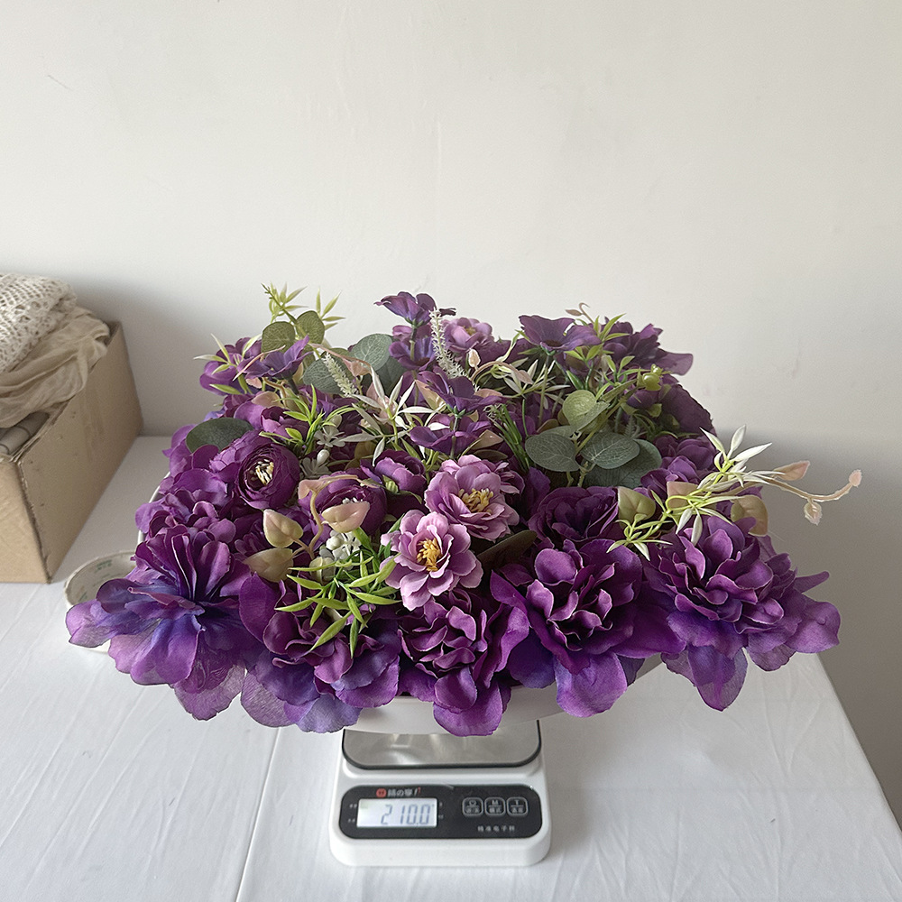 Decoración de boda transfronteriza pared de flores de simulación de flores de seda de jardín de Monet hortenida paisajismo diseño de fila de flores artificiales de alto nivel