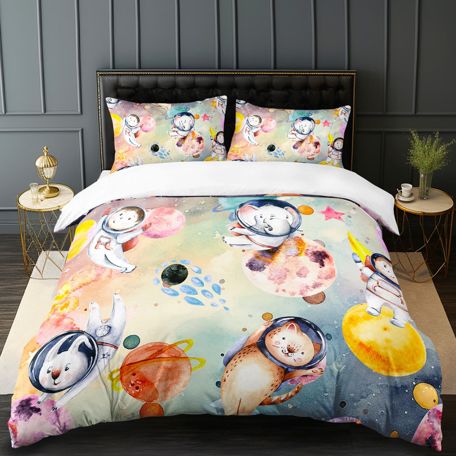 Fábrica de origen textil doméstico astronauta digital impresión set edredón suave piel respaldar TEMU / JIT