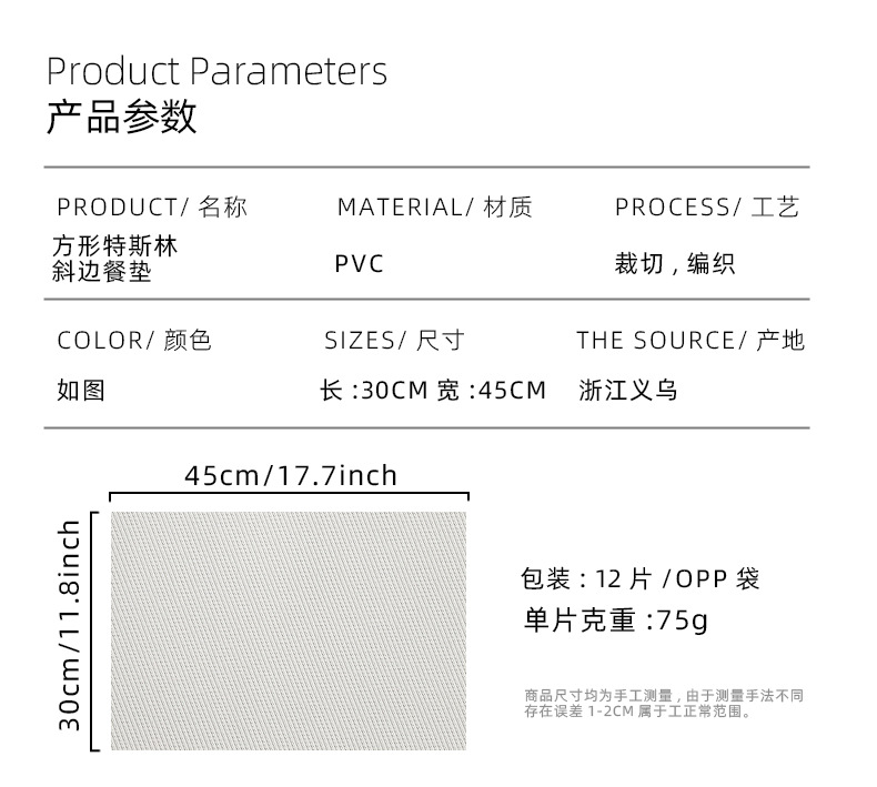 2片装:46*31*0.3CM,152g