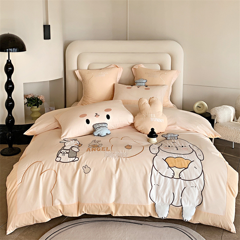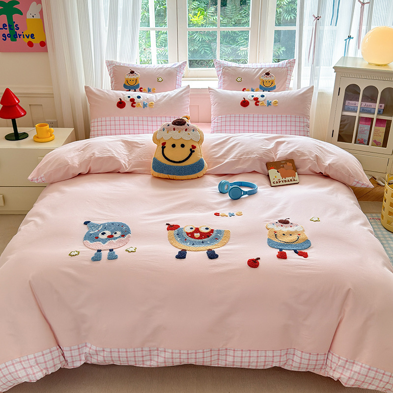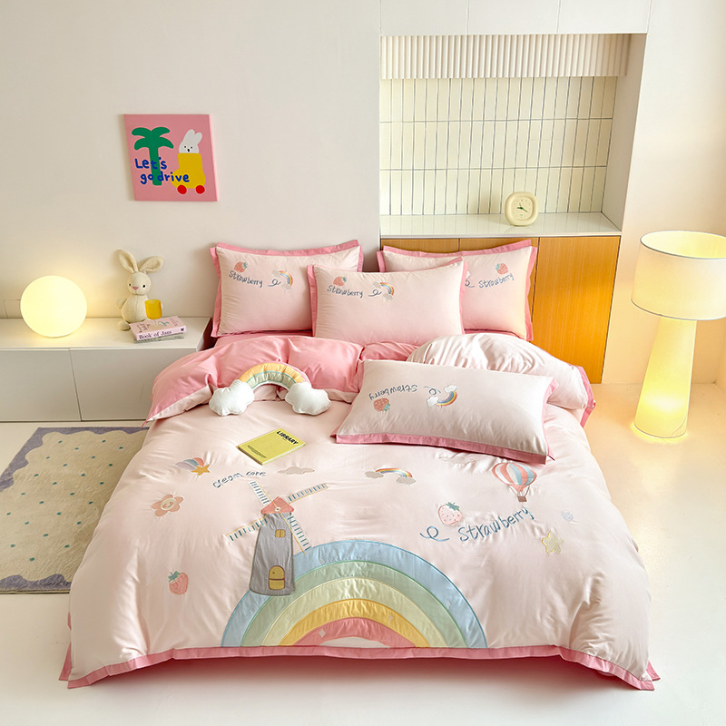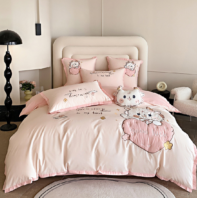 De gama alta lindo 100 de algodón puro niñas de cuatro piezas de dormitorio de estudiantes hoja de cama cubierta del edredón suave transpirable de algodón puro conjunto de tres piezas