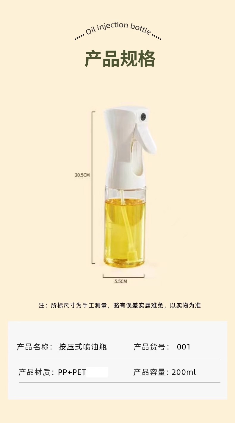 Botella de pulverización de aceite de cocina doméstica pulverización de aceite de oliva pulverización de aceite comestible para barbacoa reduciendo grasa control de aceite pulverización de alta presión