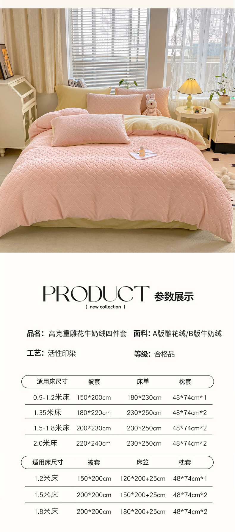 | Especificaciones de tamaño | Set de sábanas de dormitorio de 0.9m de tres piezas [aplicable a edredones 150 * 200], set de sábanas de 1.2m de tres piezas [aplicable a edredones 150 * 200], set de sábanas de tamaño medio de 1.5m de cuatro piezas [aplicable a edredones 180 * 220], set de sábanas de 1.5m de cuatro piezas [aplicable a edredones 200 * 230], set de sábanas de 1.8m de cuatro piezas [aplicable a edredones 200 * 230], set de sábanas de 2m de cuatro piezas [aplicable a edredones 220 * 240], 1.5m cama de estilo de cama de cuatro piezas [aplicable a 200 * 230 edredones], 1.8m cama de estilo de cama de cuatro piezas [aplicable a 200 * 230 edredones], 150 * 200cm de una sola cubierta, 180 * 220cm de una sola cubierta, 200 * 230cm de una sola cubierta, 220 * 240cm de una sola cubierta, 48 * 72cm de un par de funda de almohada |