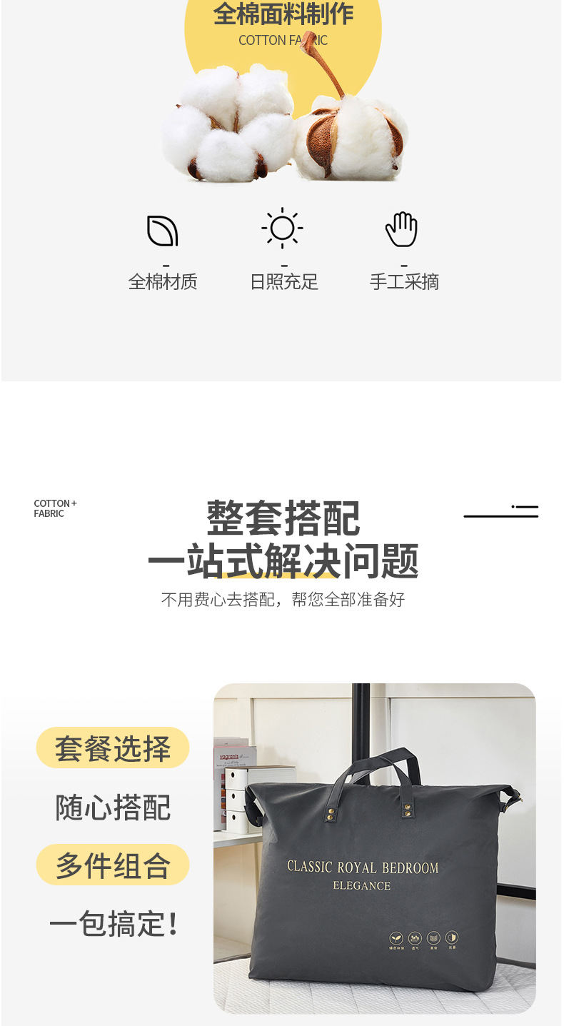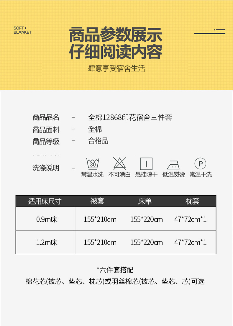 | Especificaciones de tamaño | 0,9 / 1 / 2m cama de una sola cama de tres piezas, 0,9m cama de seis piezas [conjunto de tres piezas + 3 kg de edredón + 3 kg de estera de algodón de 0,9m + núcleo de almohada], 0,9m cama de seis piezas [conjunto de tres piezas + 3 kg de edredón + 4 kg de estera de algodón de 0,9m + núcleo de almohada], 0,9m cama de seis piezas [conjunto de tres piezas + 4 kg de edredón + 4 kg de estera de algodón de 0,9m + núcleo de almohada], 0,9m cama de seis piezas [conjunto de tres piezas + 5 kg de edredón + 3 kg de estera de algodón de 0,9m + núcleo de almohada], Set de seis piezas de cama de 0,9 m [set de tres piezas + 5 <unk> edredón + 4 <unk> 0,9 m almohadilla de algodón + núcleo de almohada], set de seis piezas de cama de 0,9 m [set de tres piezas + 4 <unk> edredón + 4 <unk> 0,9 m almohadilla de pluma + núcleo de almohada], set de seis piezas de cama de 0,9 m [set de tres piezas + 4 <unk> 0,9 m almohadilla de pluma + núcleo de almohada] |