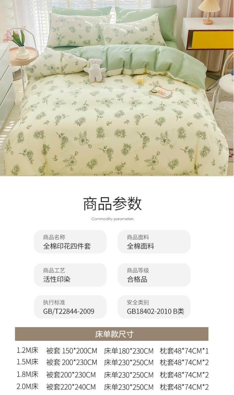 | Especificación del tamaño | Juego de tres piezas de cama de 1,2 m,1,8 m hoja de cama conjunto de cuatro piezas,Juego de sábanas de cuatro piezas de 1,5 m,1,8 m sábana bajera de cuatro piezas conjunto,150*200cm sola cubierta del edredón,200*230cm sola cubierta del edredón,220*240cm sola cubierta del edredón |