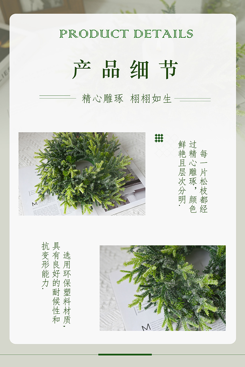 2025 nuevo producto transfronterizo rama de pino crema colgante guirnalda de aguja de pino decoración del festival de Amazon hogar candelabro de Navidad guirnalda