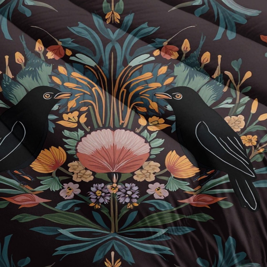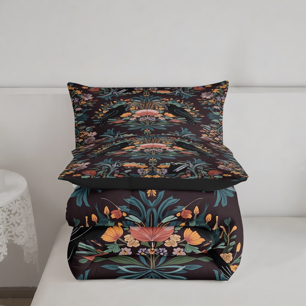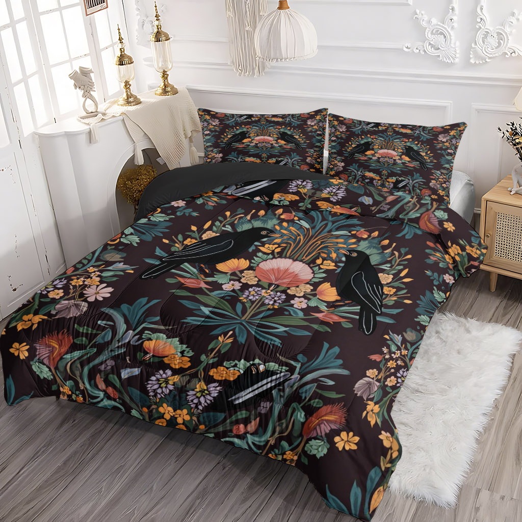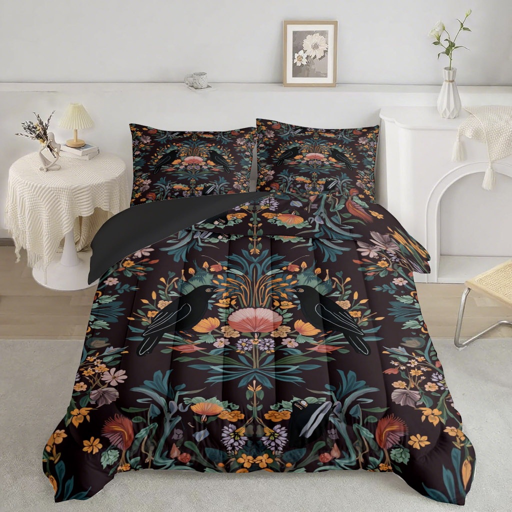 TEMU / JIT transfronterizo colorido patrón y pájaros impresión digital HD 180gms suave colcha colcha almohada set