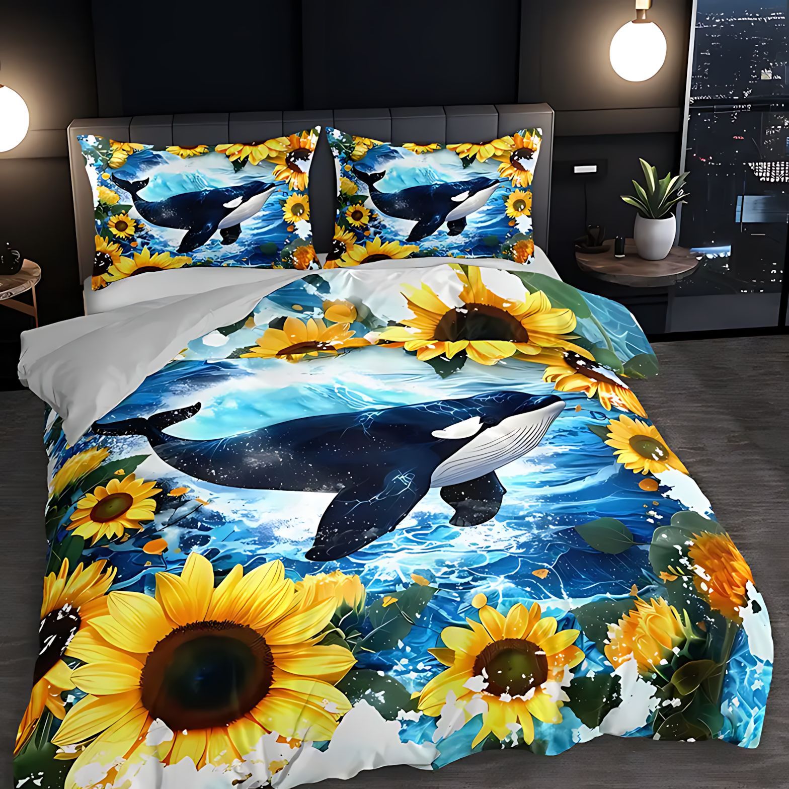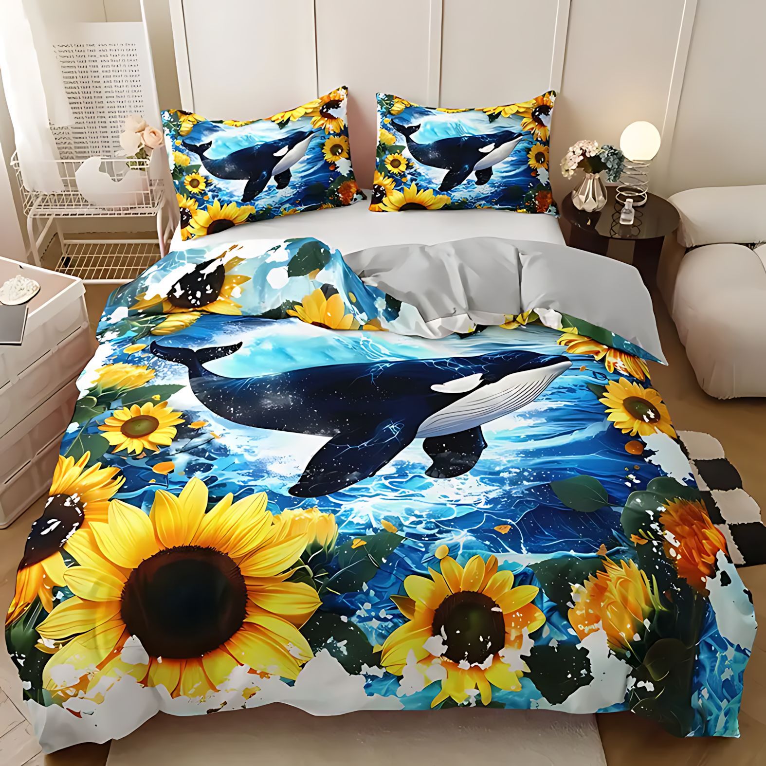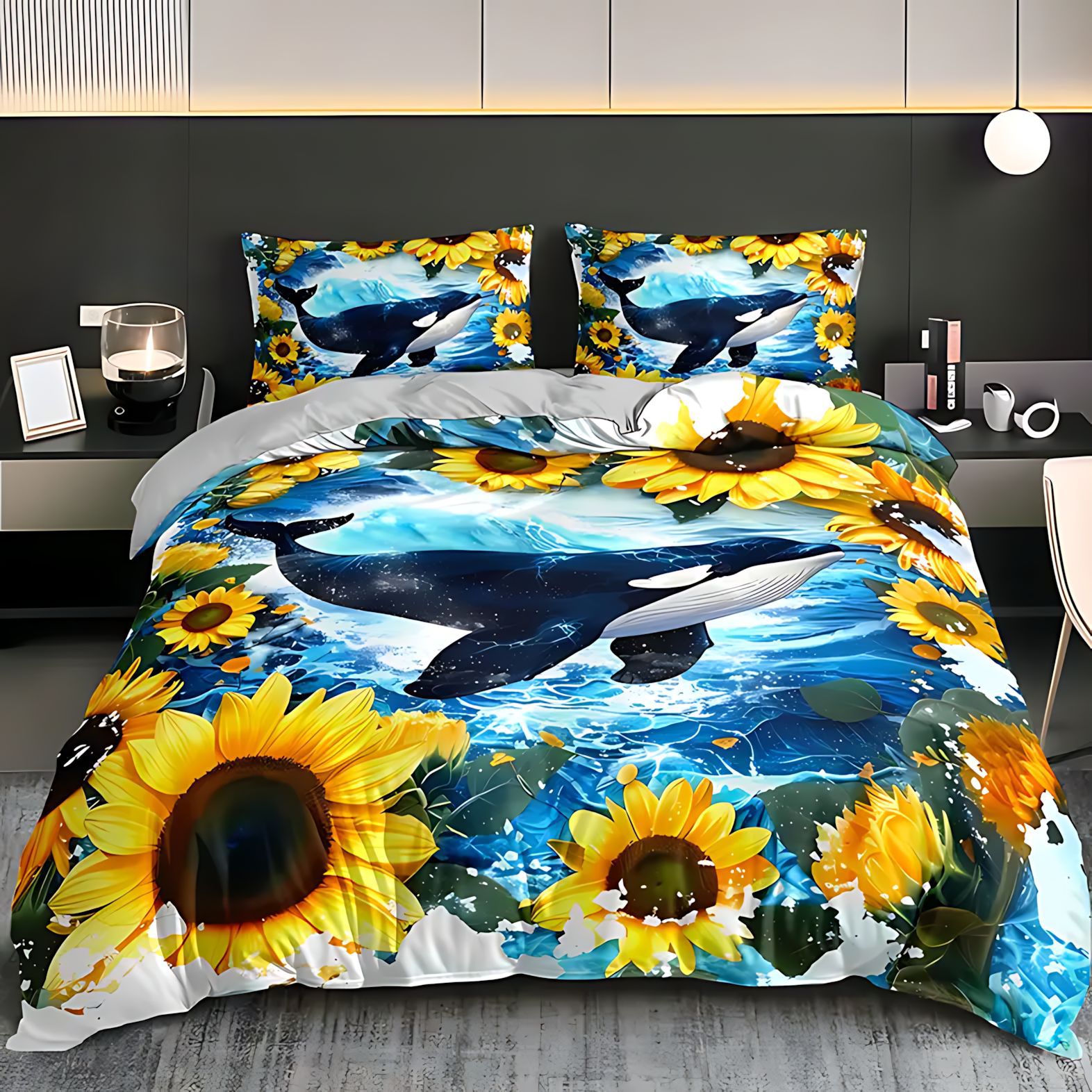 TEMU / JIT girasol tema marino set edredón transfronterizo molido edredón de impresión digital se puede diseñar