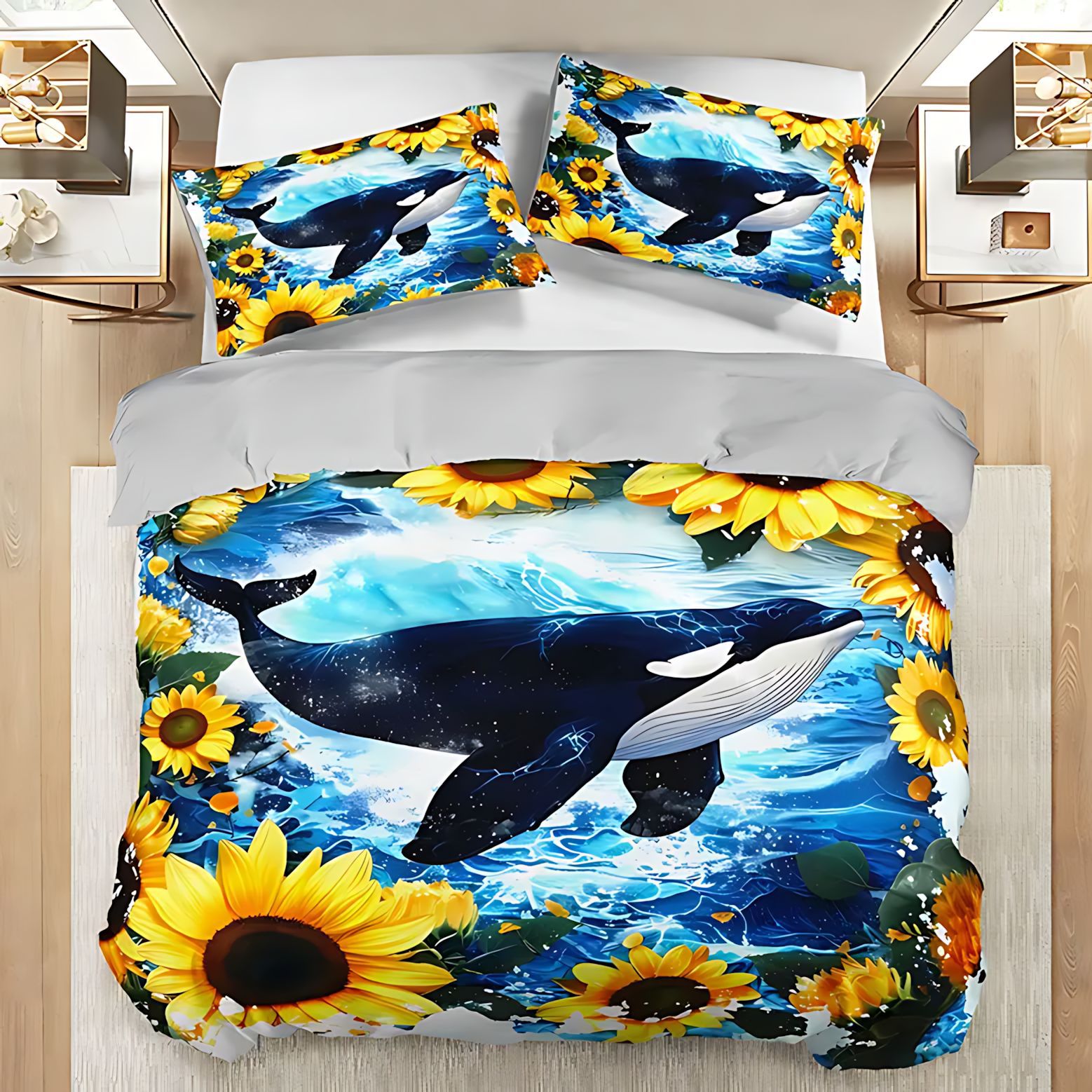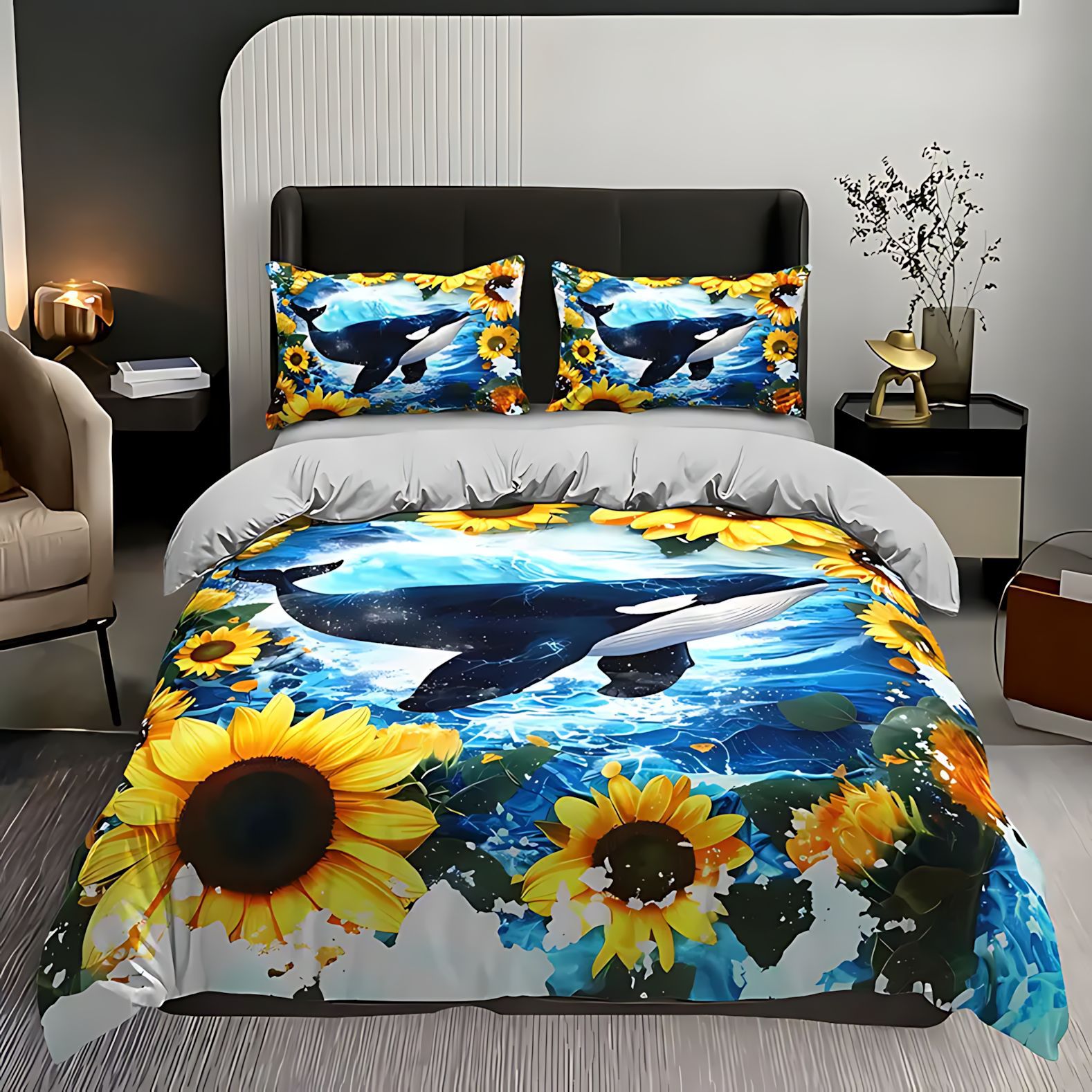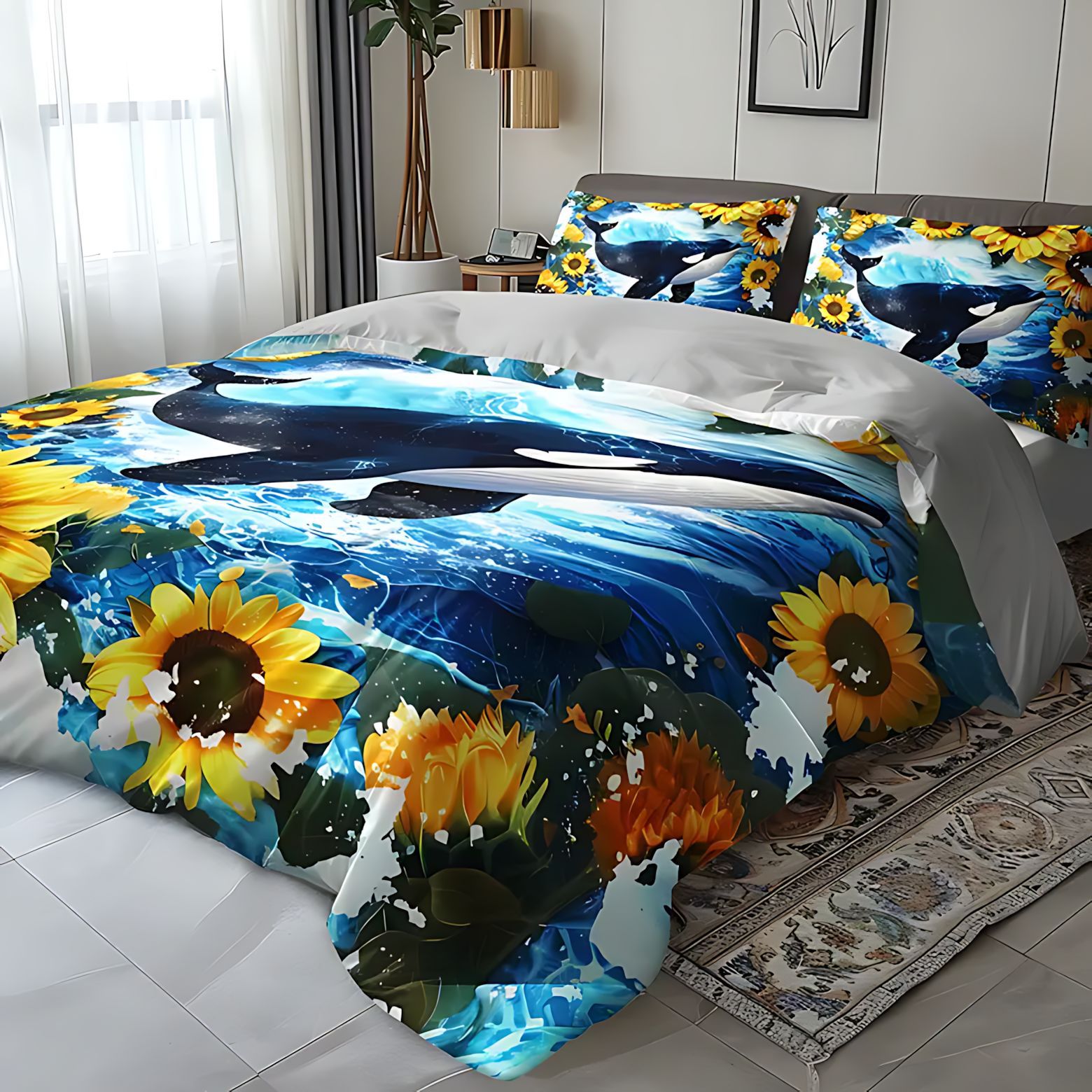 TEMU / JIT girasol tema marino set edredón transfronterizo molido edredón de impresión digital se puede diseñar