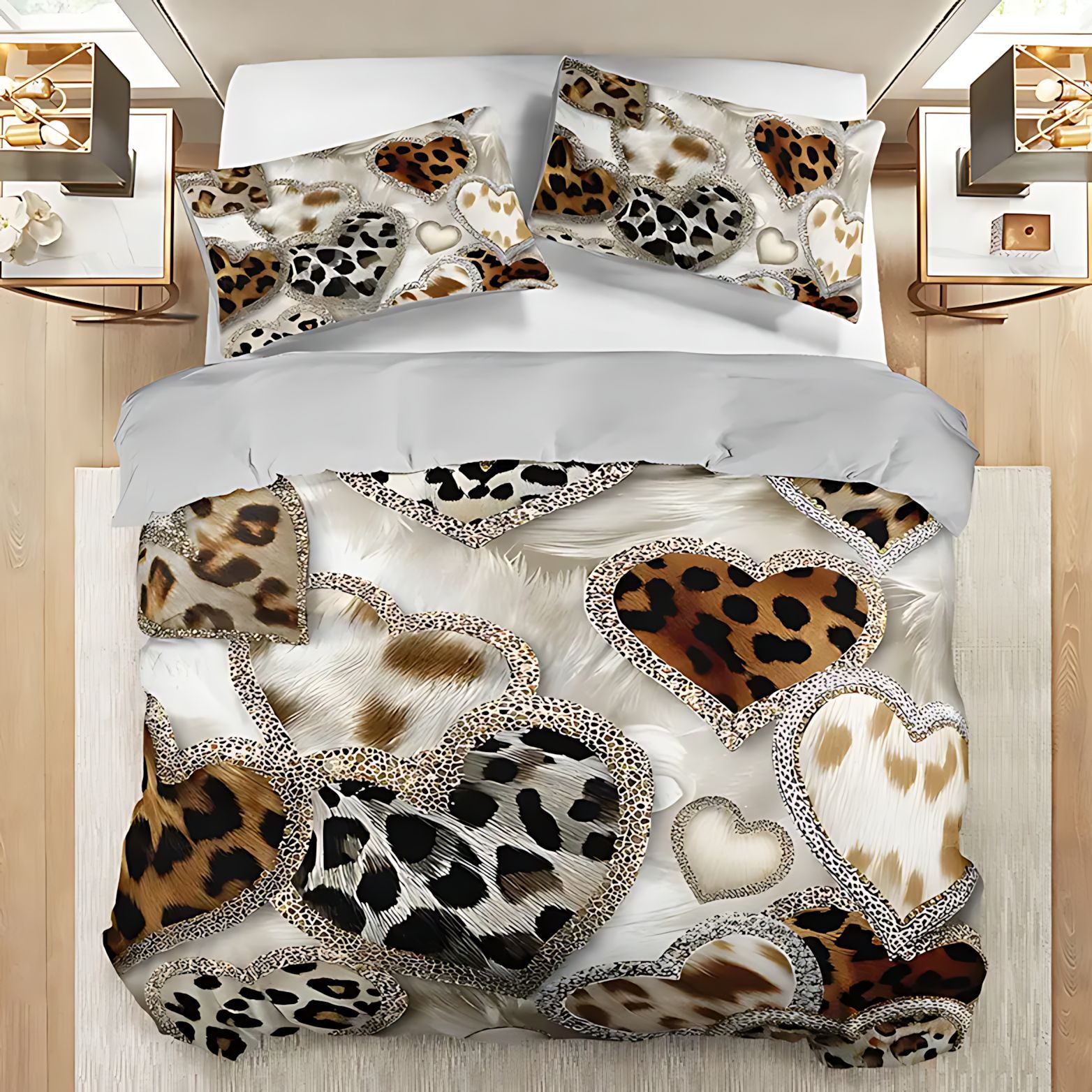 TEMU / JIT ropa de cama transfronteriza amor leopardo impresión digital HD colcha de colcha fuente de fábrica