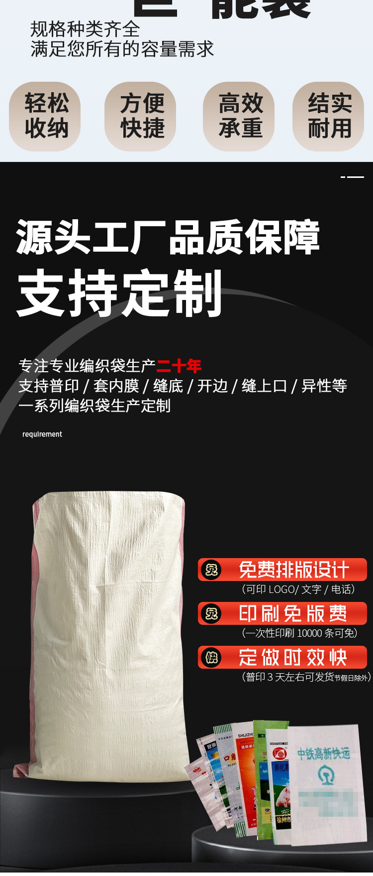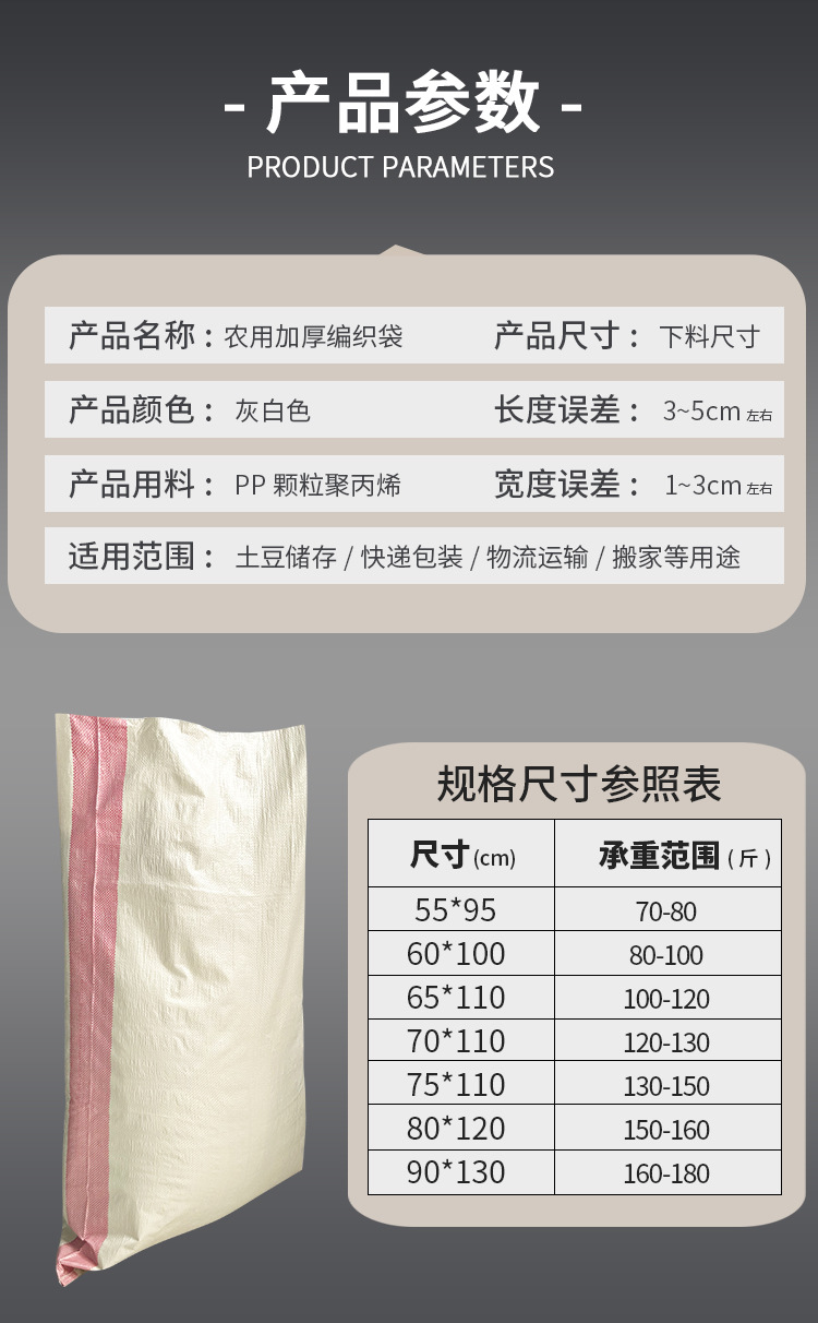 | Especificaciones y modelos | (bolsa de harina de soja de grano) gris y blanco engrosado [10 piezas]; 55 * 95cm de ancho * largo, (bolsa de harina de soja de grano) gris y blanco engrosado [10 piezas]; 60 * 100cm de ancho * largo, (bolsa de harina de soja de grano) gris y blanco engrosado [10 piezas]; 65 * 110cm de ancho * largo, (bolsa de harina de soja de grano) gris y blanco engrosado [10 piezas]; 70 * 110cm de ancho * largo, (bolsa de harina de soja de grano) gris y blanco engrosado [10 piezas]; 75 * 110cm de ancho * largo, (bolsa de harina de soja de grano) gris y blanco espesado [10 piezas); 80 * 120cm de ancho * largo, (bolsa de harina de soja de grano) gris y blanco espesado [10 piezas); 90 * 130cm de ancho * largo, (bolsa de harina de soja de grano) gris y blanco espesado [10 piezas); 100 * 150cm de ancho * largo |