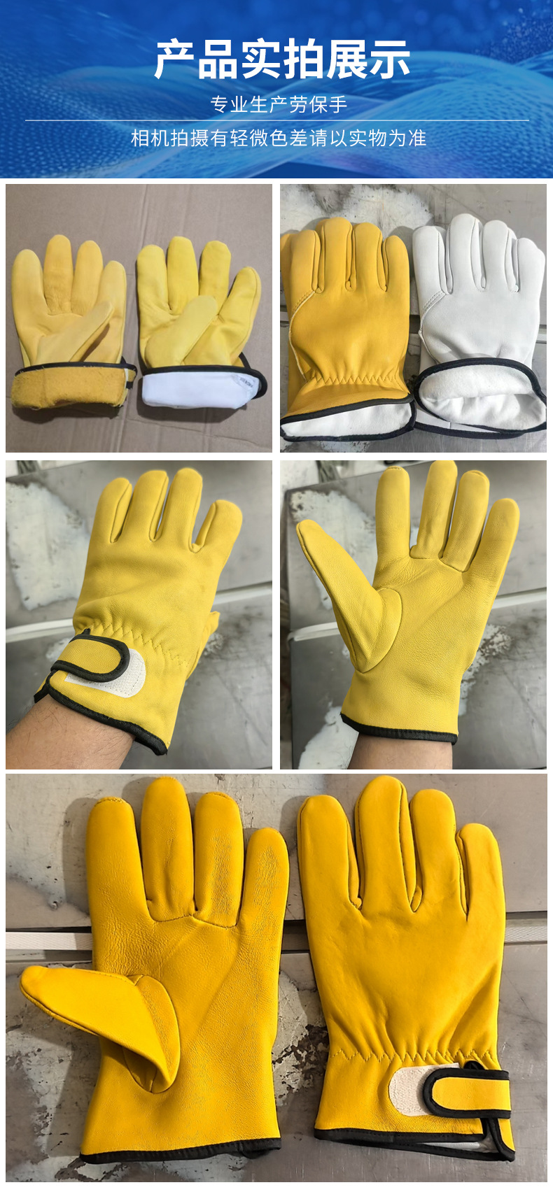 | Especificaciones y modelos | Guantes de piel de oveja amarilla de una sola capa, guantes de piel de oveja amarilla de dos capas, guantes de piel de oveja amarilla de Gato Gari |