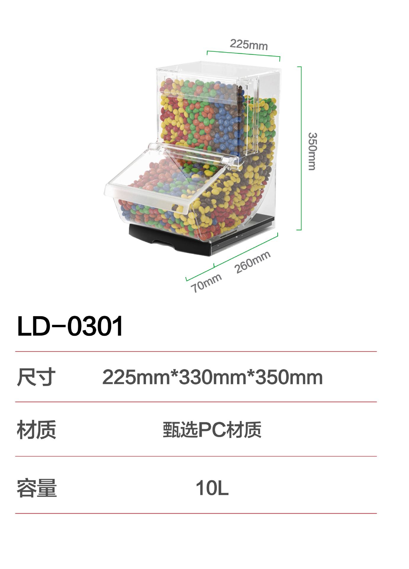 | Especificaciones y modelos | LD - 03 (22.5 * 33 * 35); transparente |