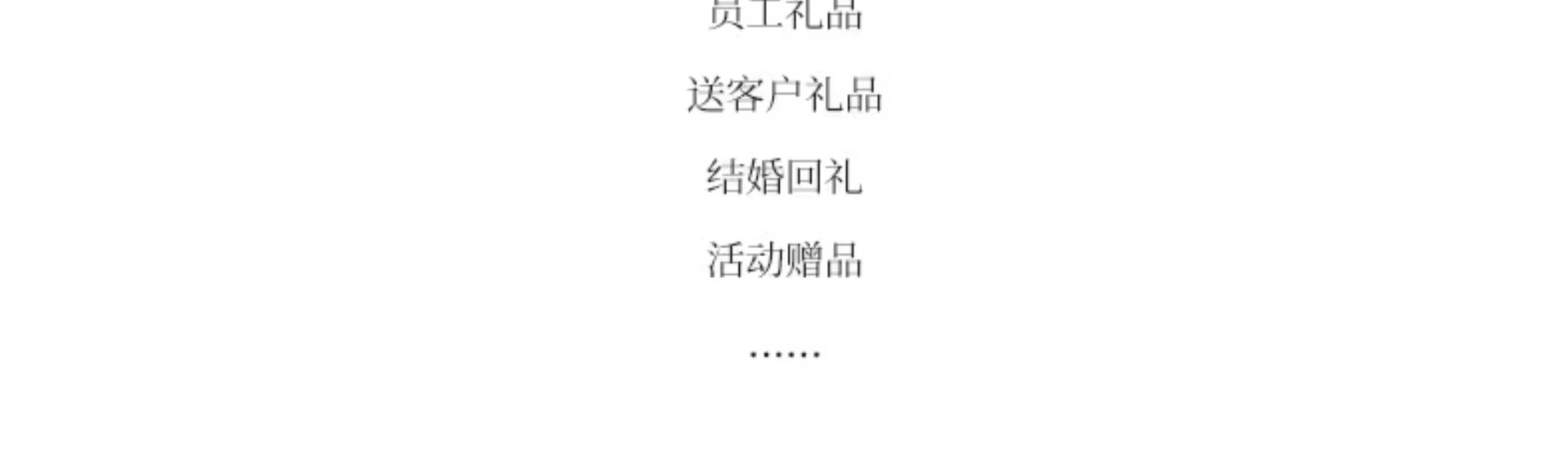 | Uso de regalos | Regalos de negocios, regalos promocionales, regalos de reunión, regalos de bienestar, regalos festivos |
