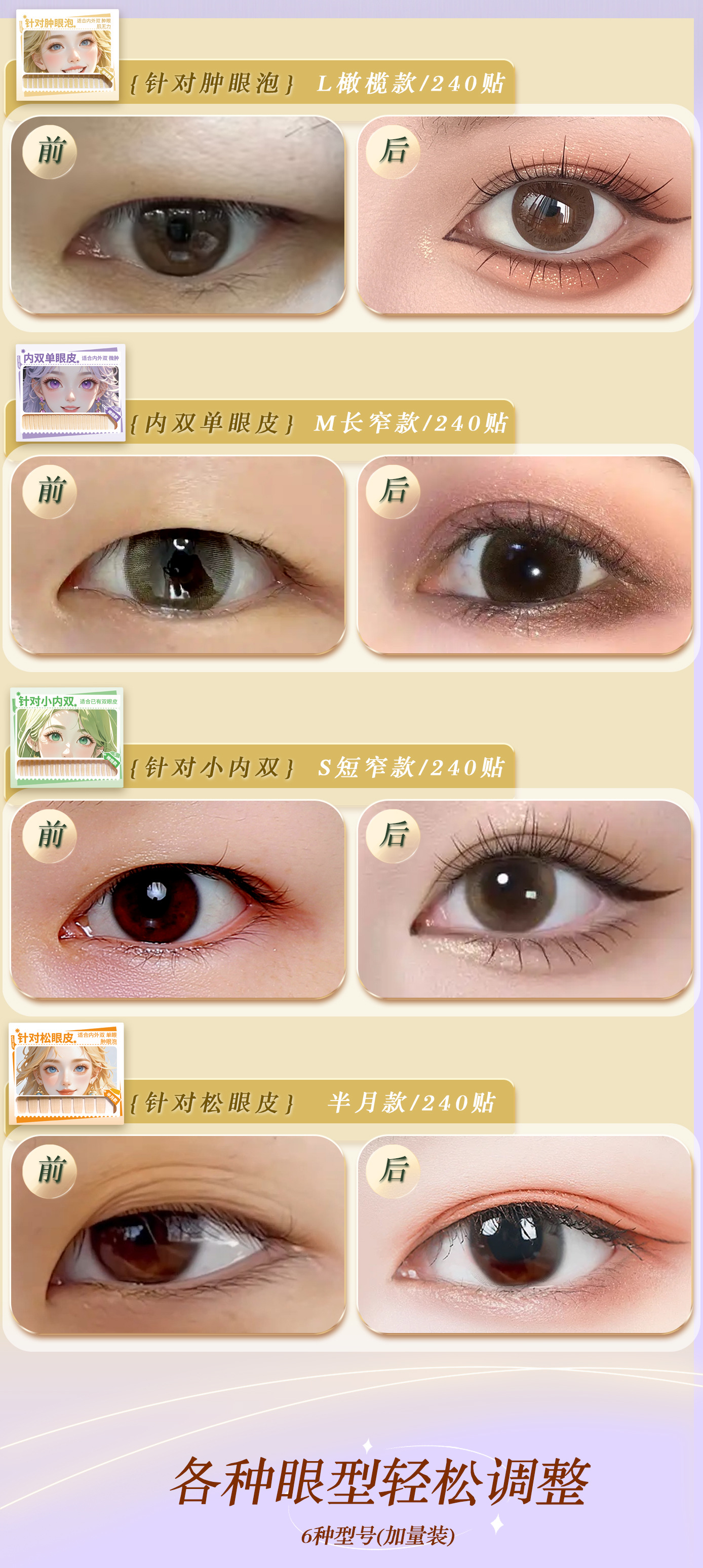 | Especificaciones | Oliva de corte diagonal / 180, Oliva / 216 y medio mes / 240 y S para el doble interior, M largo / estrecho / 240 y L Oliva / 240 |