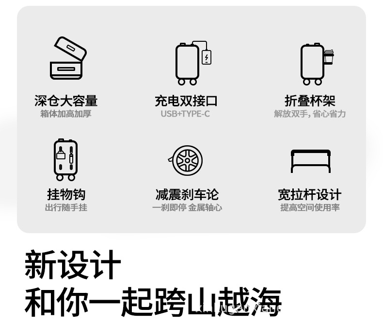 | Tamaño | Se puede abordar de 20 pulgadas [interfaz de carga de portavasos de 4 ruedas de doble fila],Se puede facturar de 24 pulgadas [interfaz de carga de portavasos de 5 ruedas mejorada],Se puede facturar de 26 pulgadas [interfaz de carga de portavasos de 5 ruedas mejorada] |