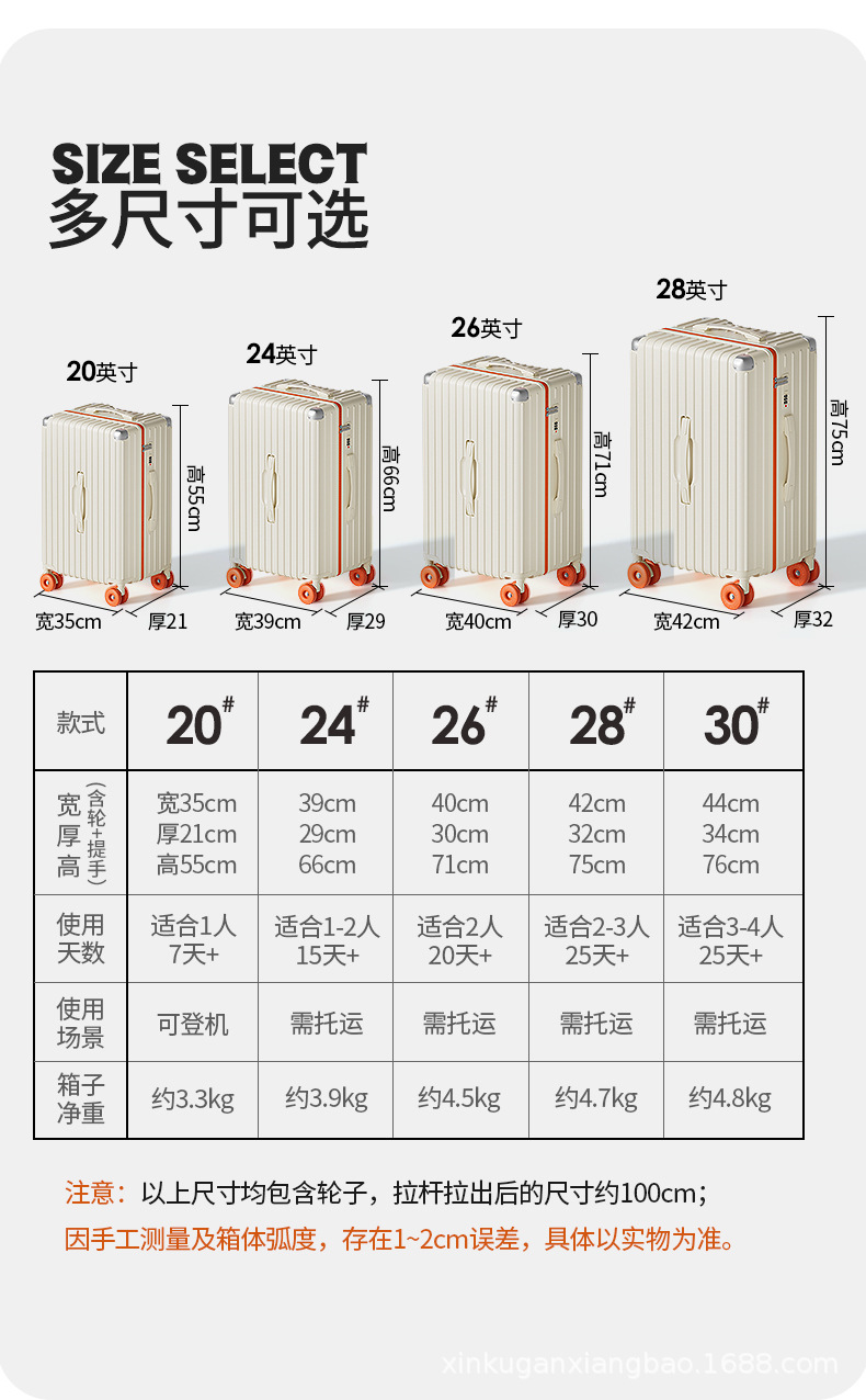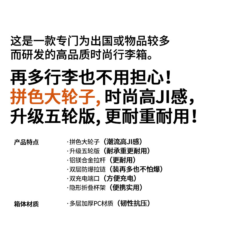 | Colores | Color doble naranja [caja gruesa de PC con cremallera a prueba de explosiones de 4 ruedas de doble fila],Fragrant Taro Purple [Actualice la caja engrosada de PC con cremallera a prueba de explosiones de 5 ruedas],Blanco beige [Caja engrosada de PC con cremallera a prueba de explosiones mejorada de 5 ruedas],Gris plateado [Caja gruesa de PC con cremallera a prueba de explosiones mejorada de 5 ruedas],Yao Ye Hei [Actualice la caja engrosada de PC con cremallera a prueba de explosiones de 5 ruedas] |