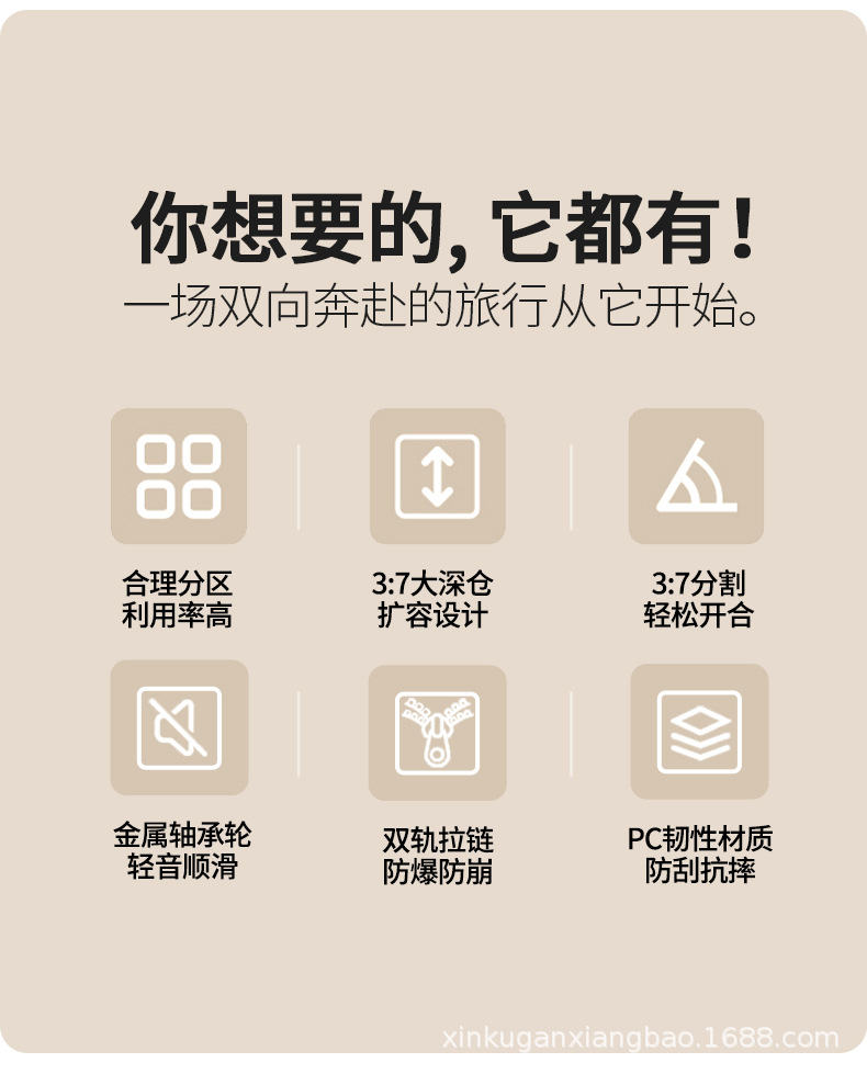 | Tamaño | Caja de embarque de 20 pulgadas [convencional de 55 puntos, doble fila y 4 ruedas],Caja de envío de 24 pulgadas [gran capacidad 3/7 minutos actualización 5 rondas],Caja de envío de 26 pulgadas [gran capacidad 3/7 minutos actualización 5 rondas],Caja de envío de 28 pulgadas [gran capacidad 3/7 minutos actualización 5 rondas] |