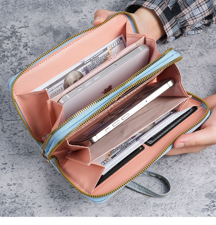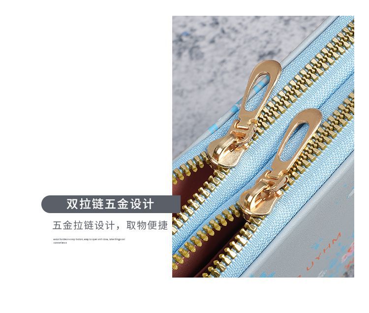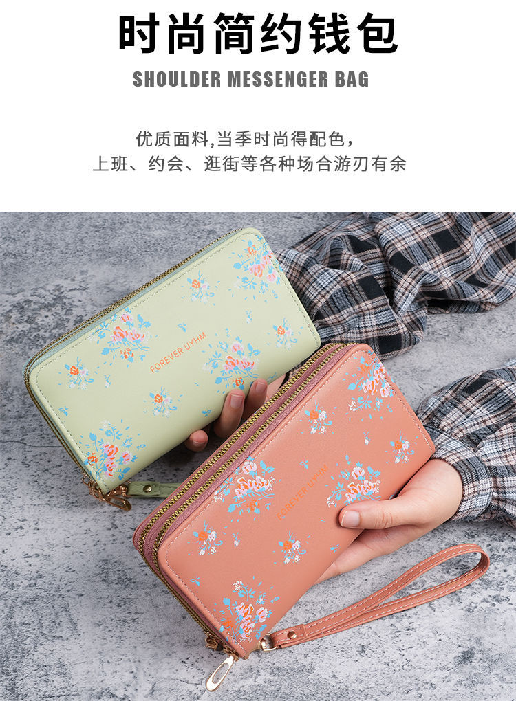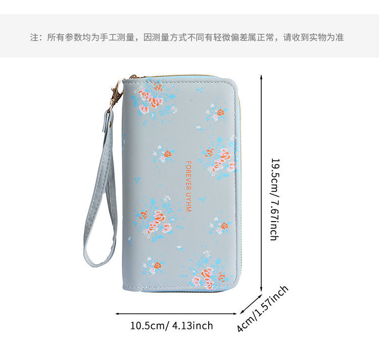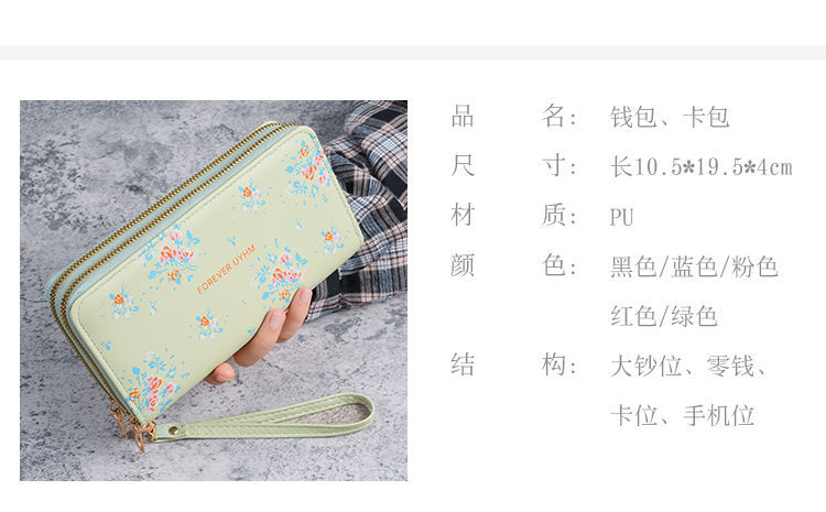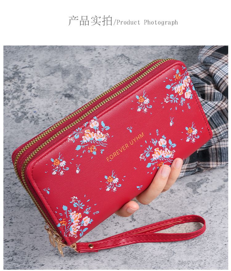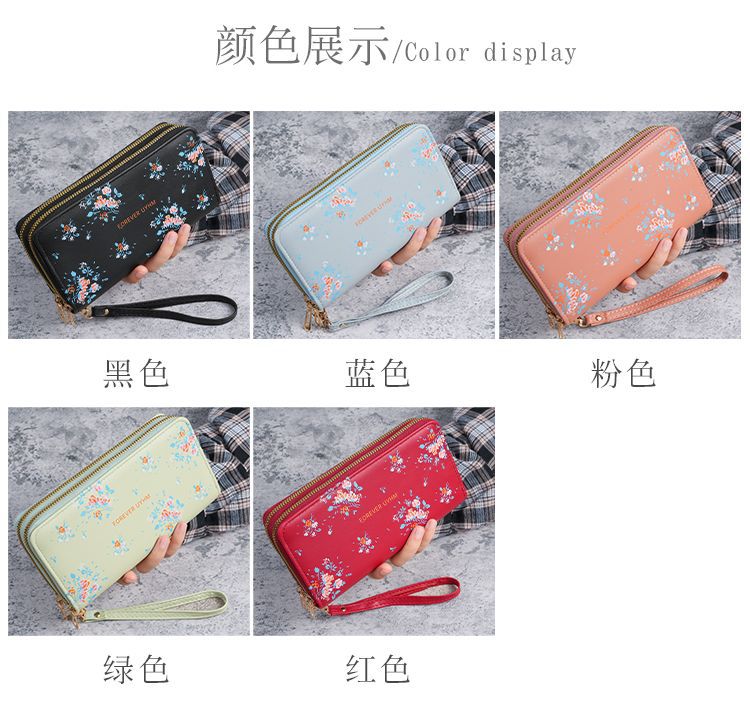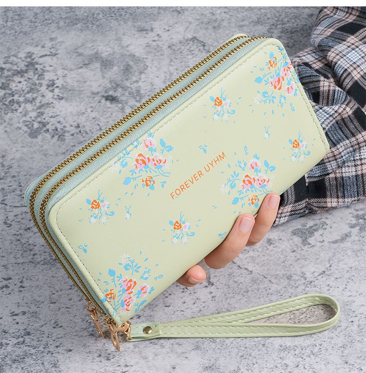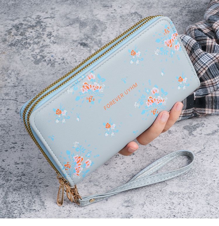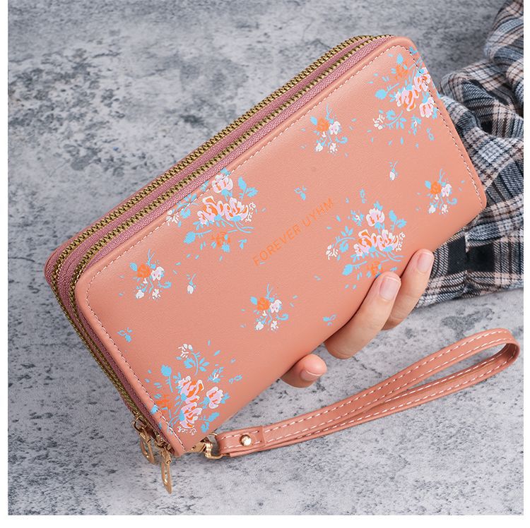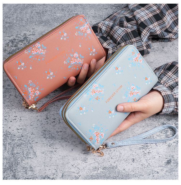 Nuevo estilo de mujer larga doble cremallera estilo coreano estudiantes flores de gran capacidad bolso de teléfono móvil bolso de mano bolso de cambio suave