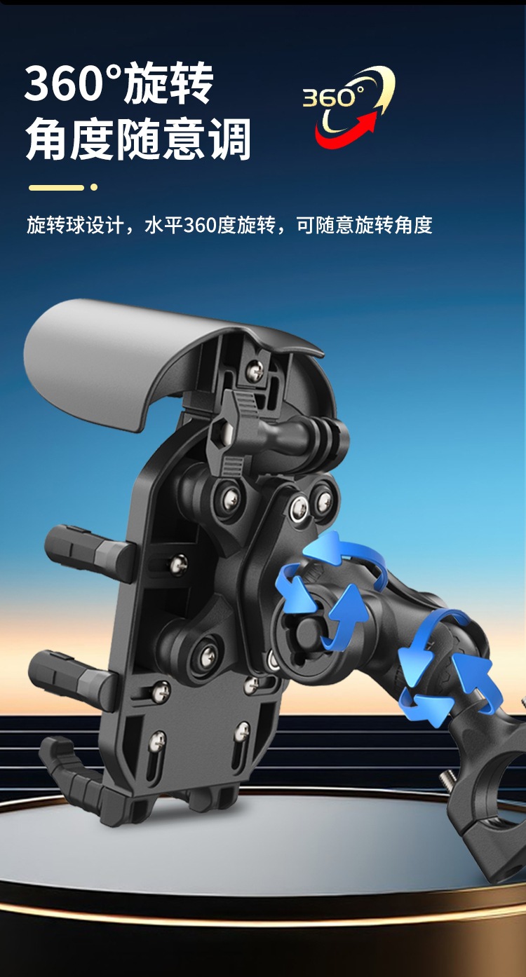 【4】骑行手机支架采用旋转球设计,可在水平方向360°旋转,随意摆放角度,操作简单快捷