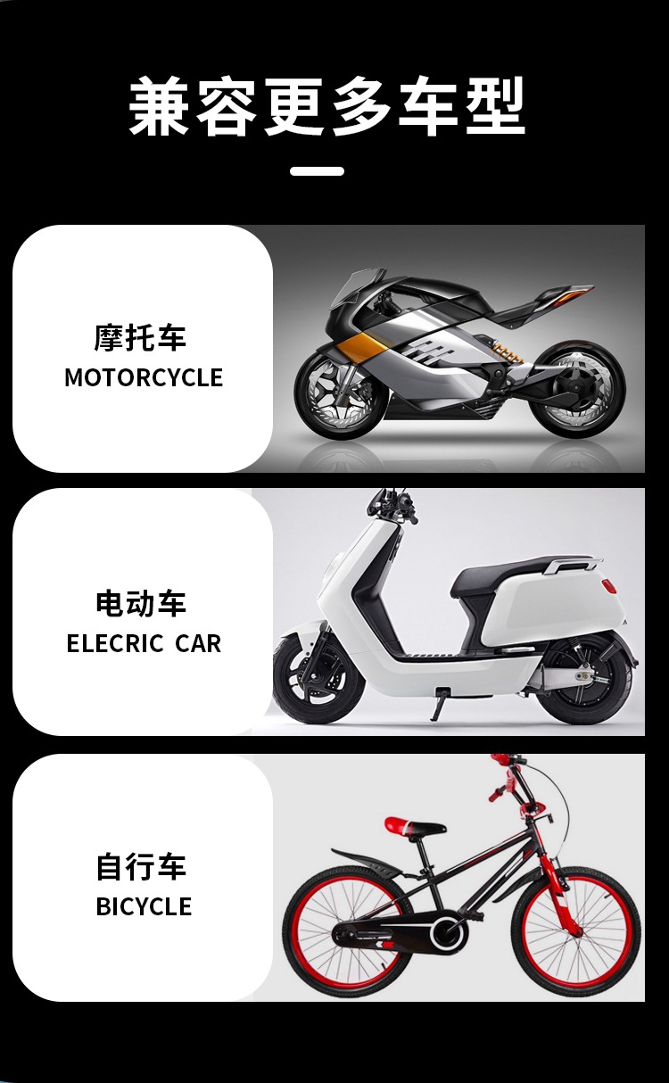 Can be installed on DC10-24V motorcycles, E-bike, bicycles, ATVs and other transportation tools