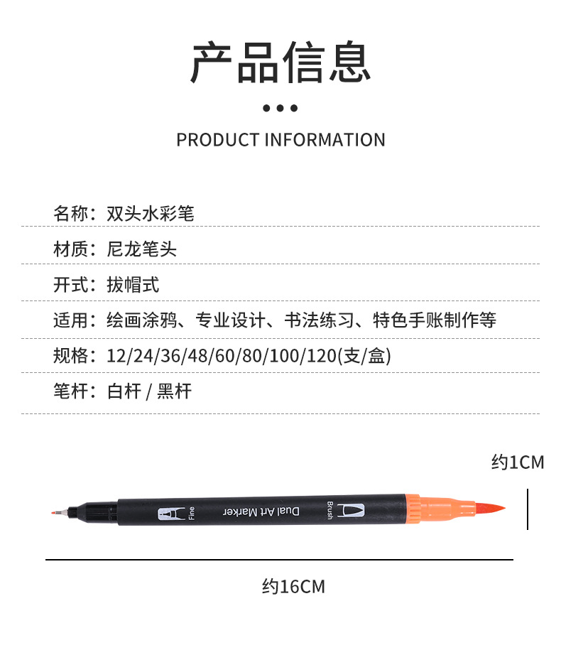 | Categoría del producto | Bolígrafo de acuarela de doble cabeza |