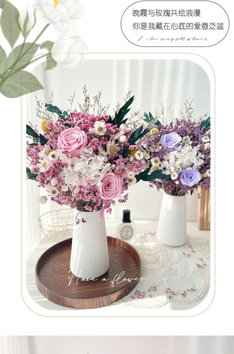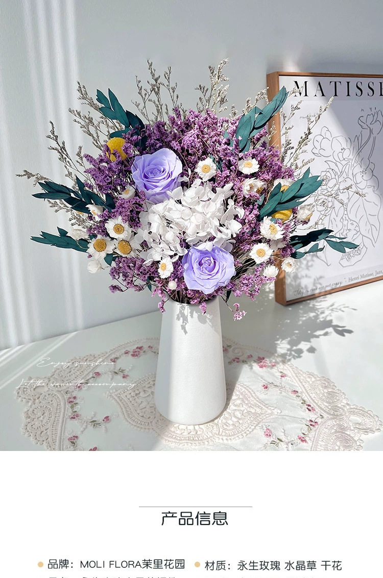 | Especificaciones | Rosas púrpuras, rosas rosadas, botellas de banana 1, botellas de banana 2, rosas azules, botellas de cerámica redondas blancas |