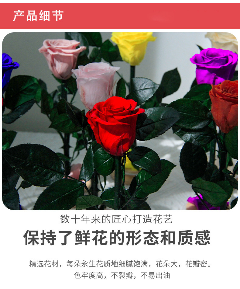 | Especificaciones | Rosa, rojo, amarillo, naranja, azul, champán, púrpura, rosa |