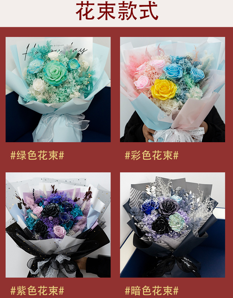 Suministro transfronterizo Flor eterna Ramo grande de rosas Producto terminado Día de San Valentín Novia Regalo de ramo de flores de sensación de alto nivel
