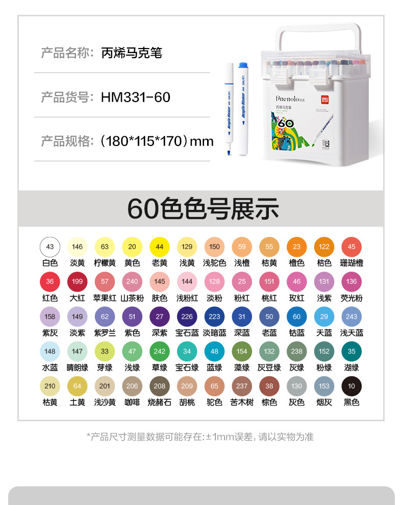 Xiupu Fuller líquido recto tipo blando acrílico marcador de 60 colores para estudiantes impermeables color plegable caballo infantil