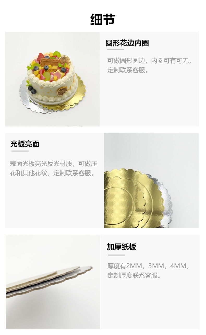 名称:圆形花边内圈光板蛋糕垫 尺寸:见规格