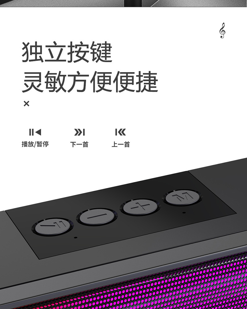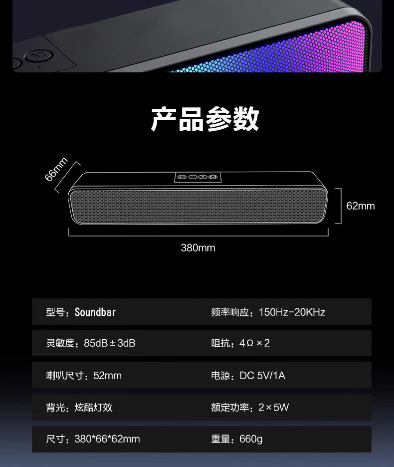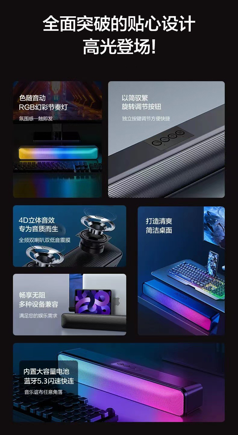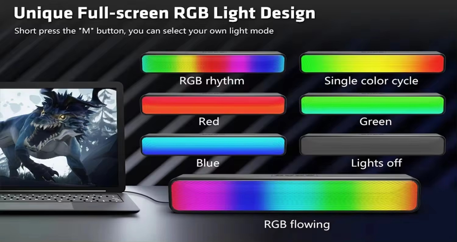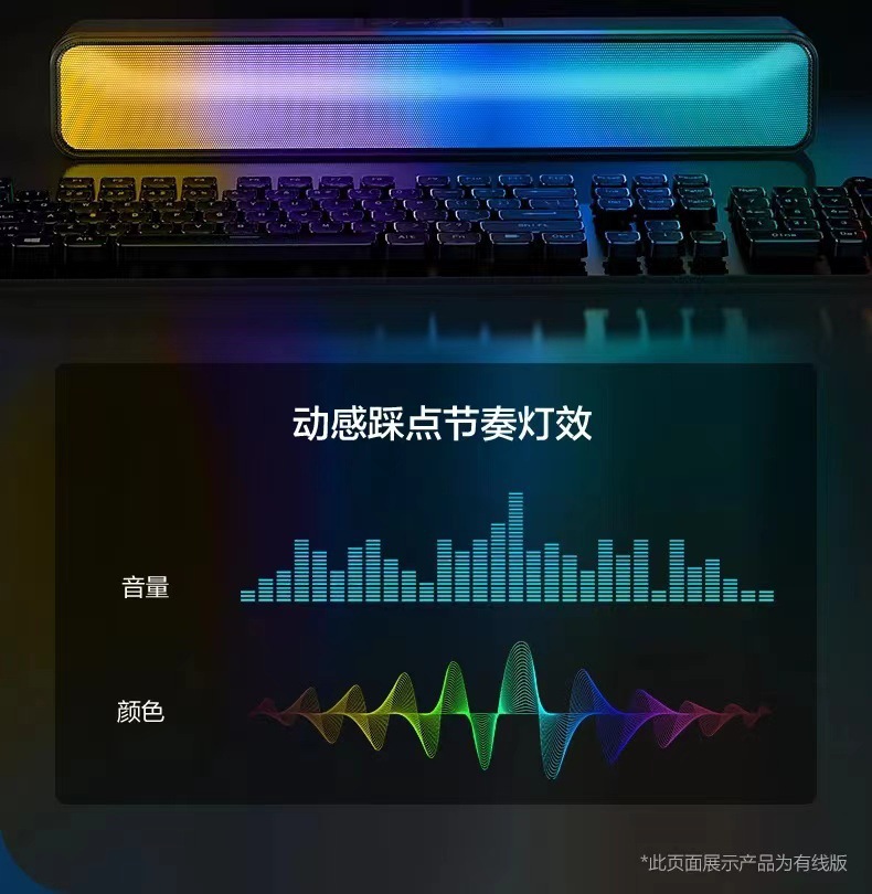 4. RGB灯效:随音乐跳动(频谱),同步单色渐变, RGB流光