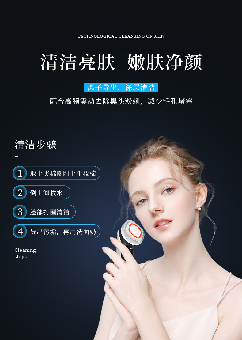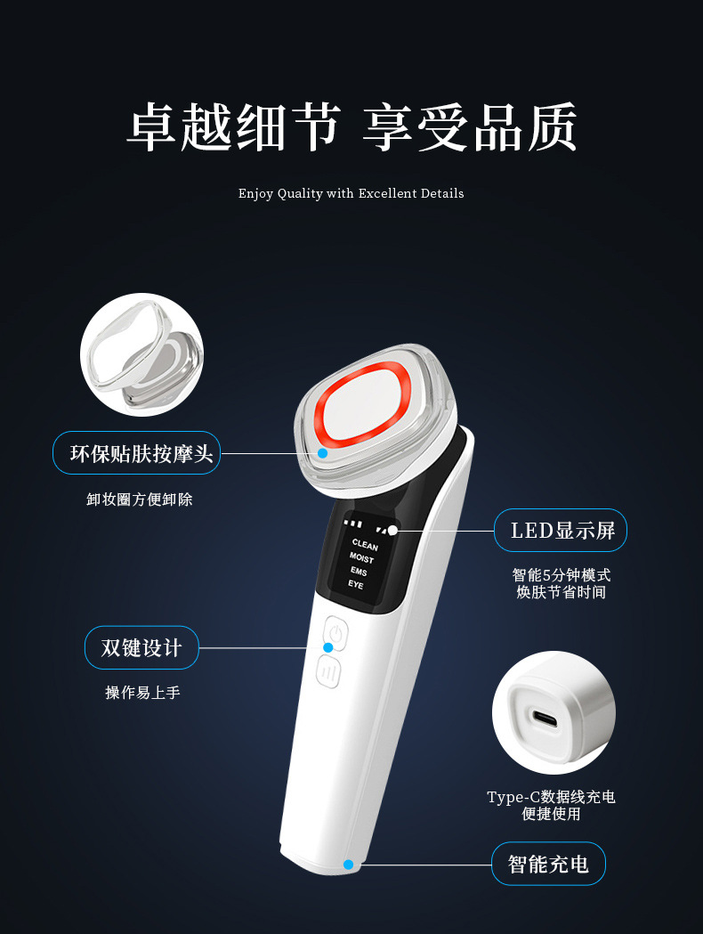 | Atributo 2 | EMS micro corriente elevación piel firme rojo azul terapia de vibración masaje limpia la piel |