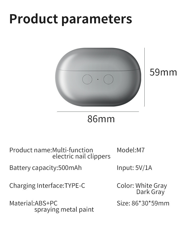 | Color | M7 cortador de uñas - blanco, M7 cortador de uñas - negro, M7 cortador de uñas - rosa, M7 cortador de uñas - púrpura, 705 afilador de uñas |