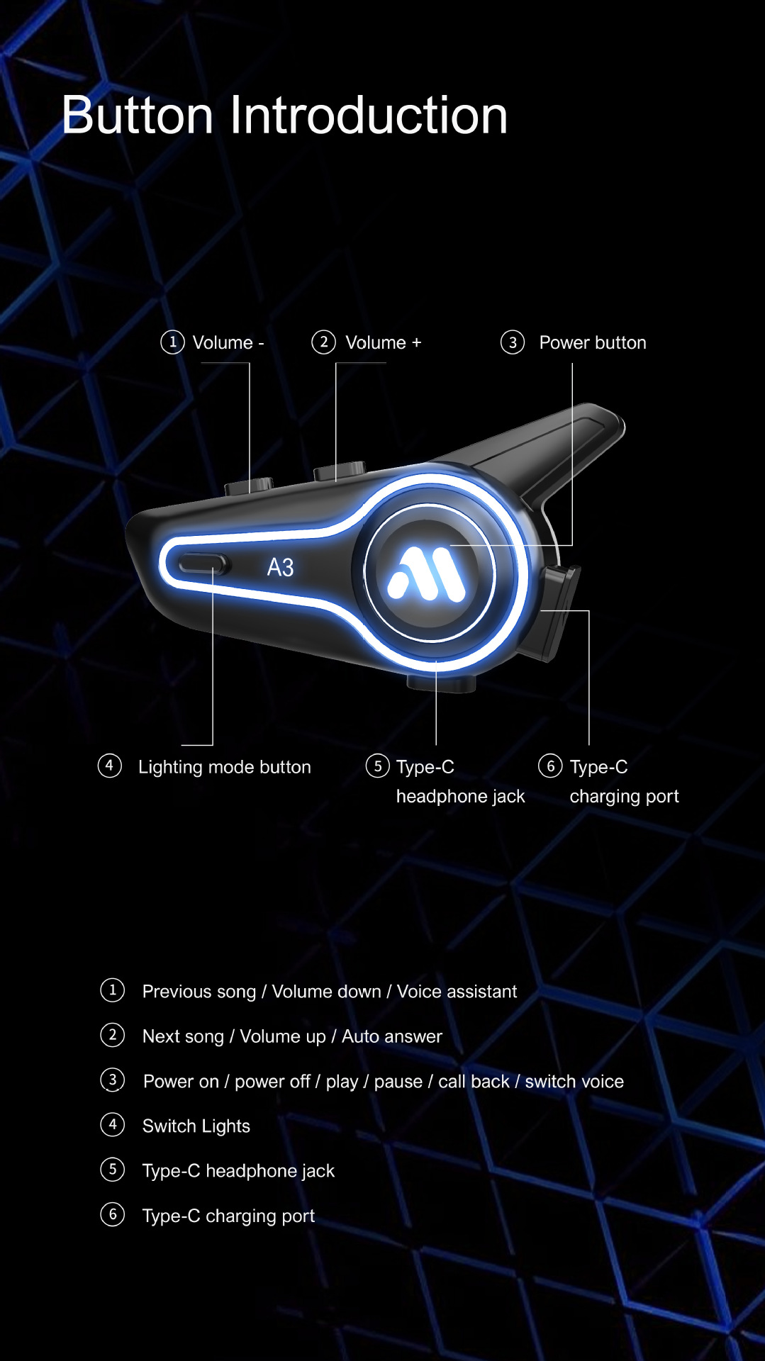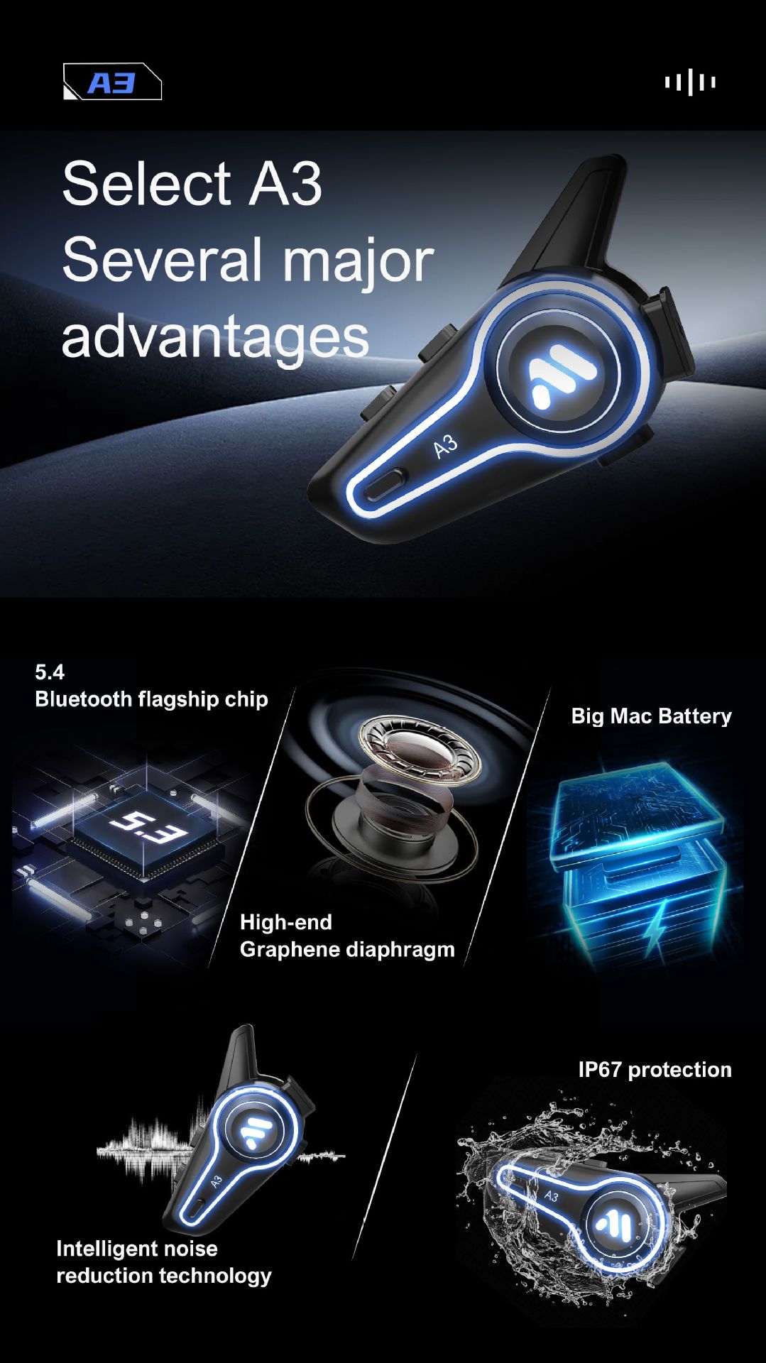 | Función | Soporte Bluetooth, impermeable, polvo, intercomunicación, reducción de ruido, reproducción de música, larga duración de la batería, llamada Bluetooth, reducción de ruido inteligente, control de voz |